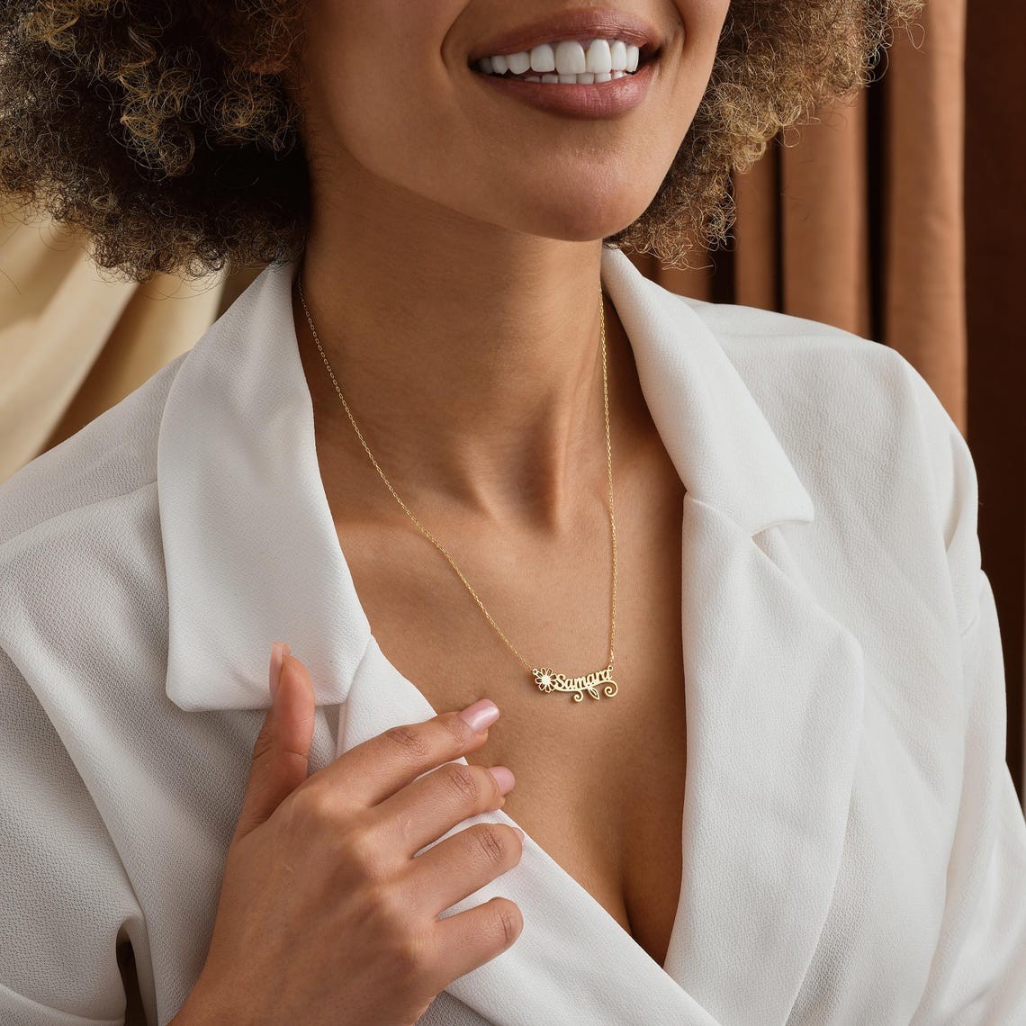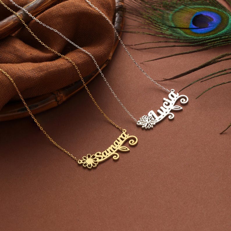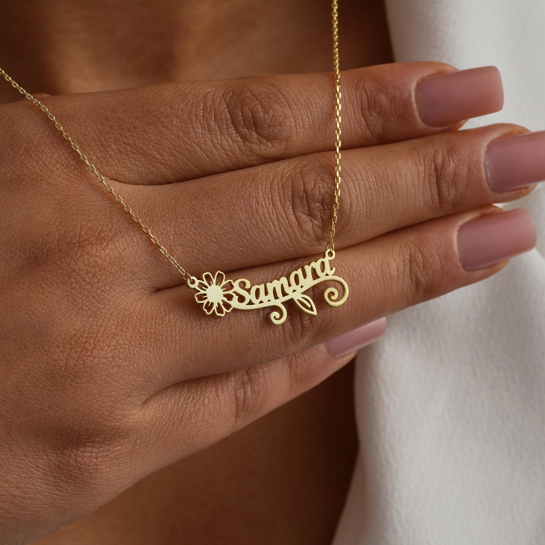 Collier Personnalisé avec Prénom et Motif Floral d'Anniversaire Collier à Offrir à Elle Cadeau d'Anniversaire pour la Fête des Mères