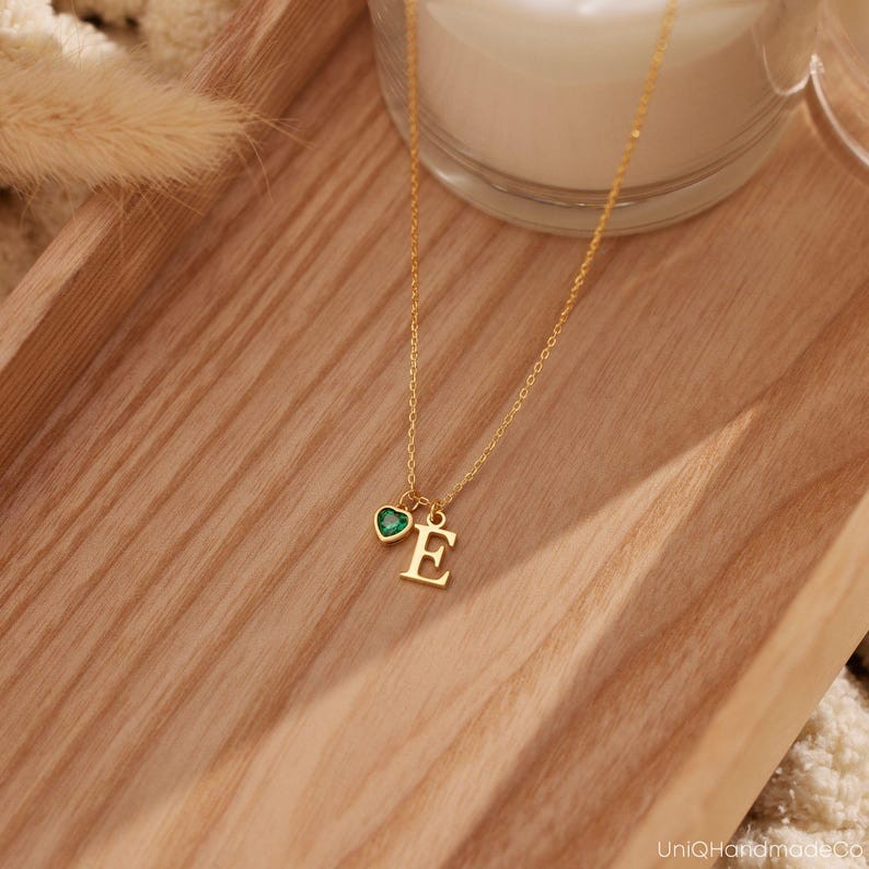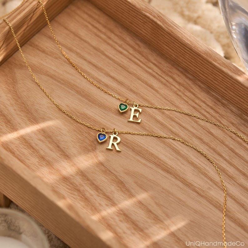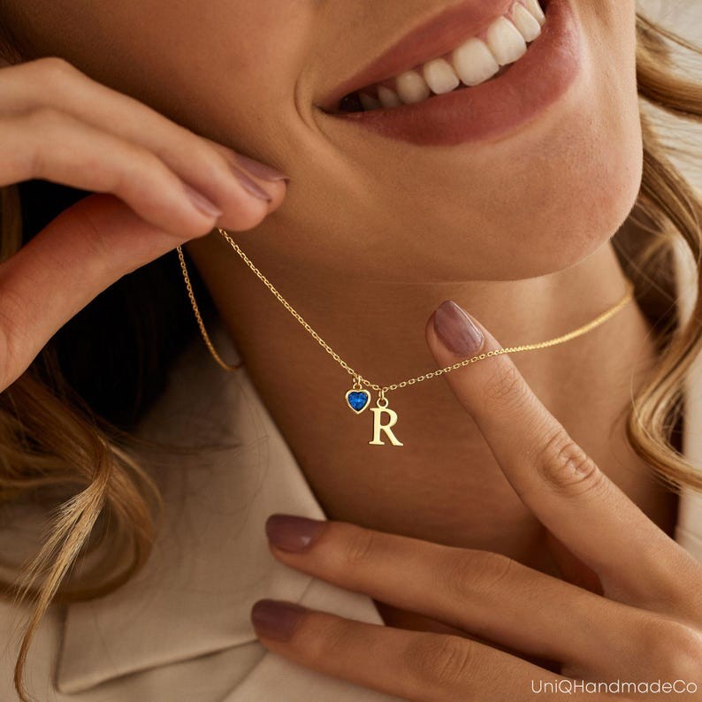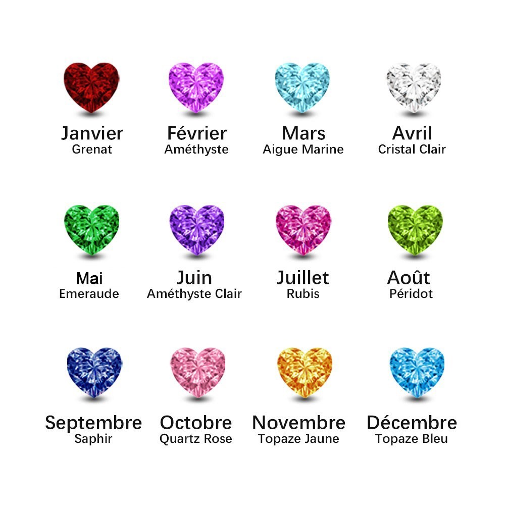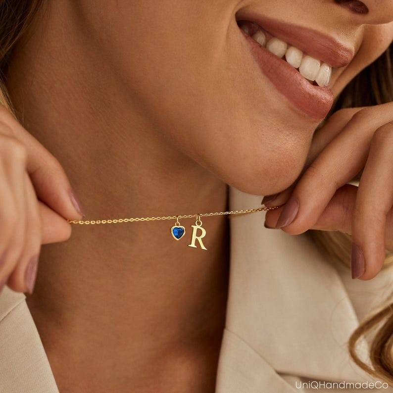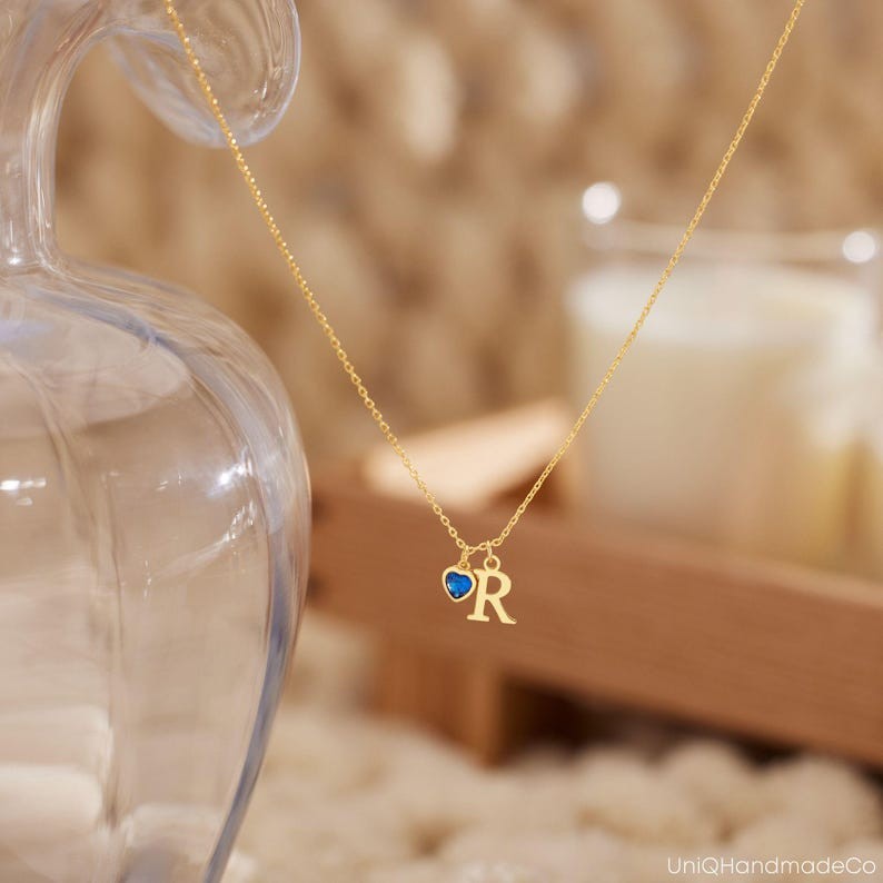 Collier Raffiné avec Pierre de Naissance en Forme de Cœur Collier Personnalisé avec Lettre Bijoux Unique pour Elle Cadeau de Saint-Valentin