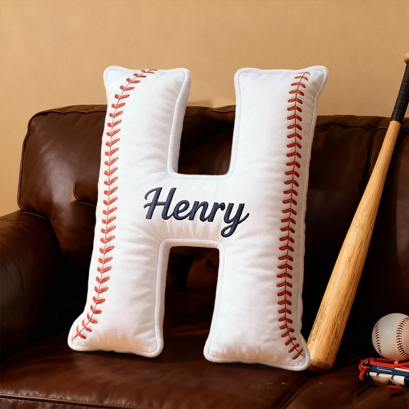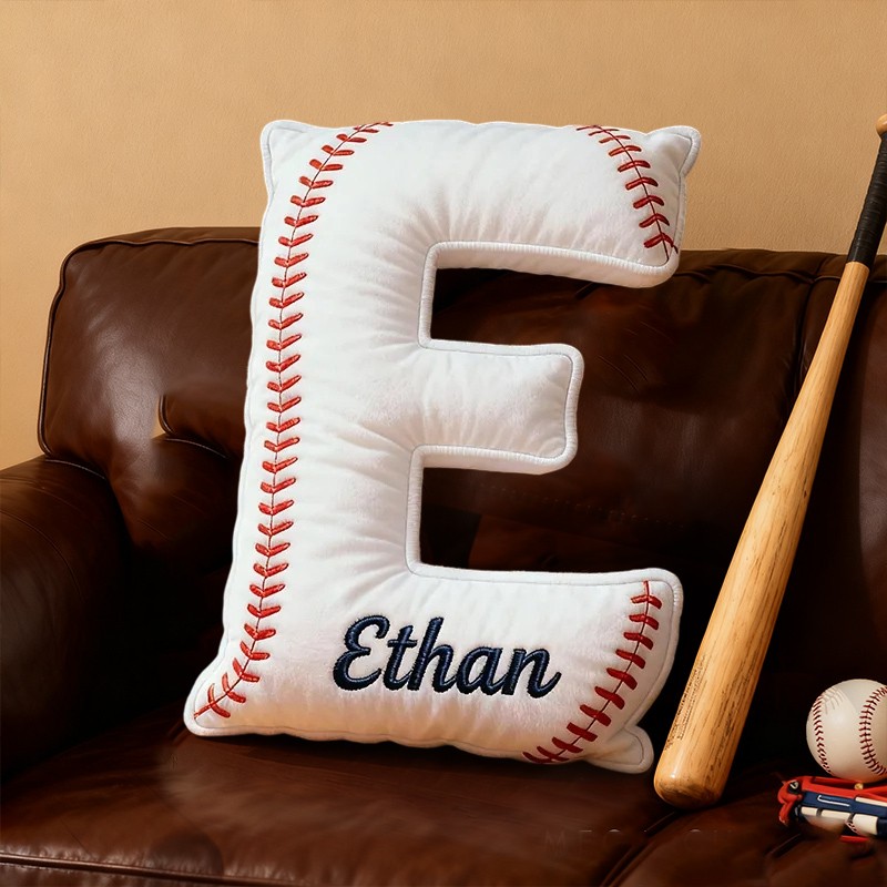 Coussin personnalisé sur le thème du baseball avec lettre et prénom cadeau de Noël idéal pour les passionnés de baseball