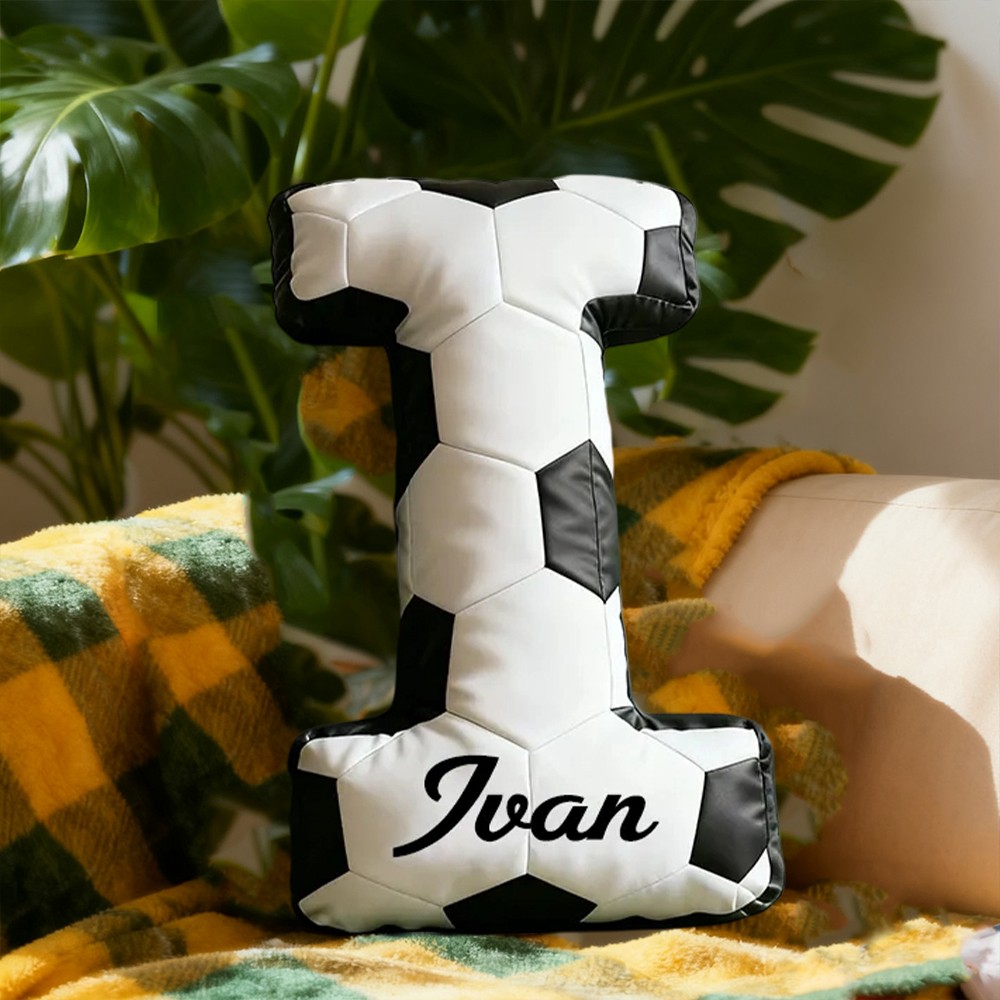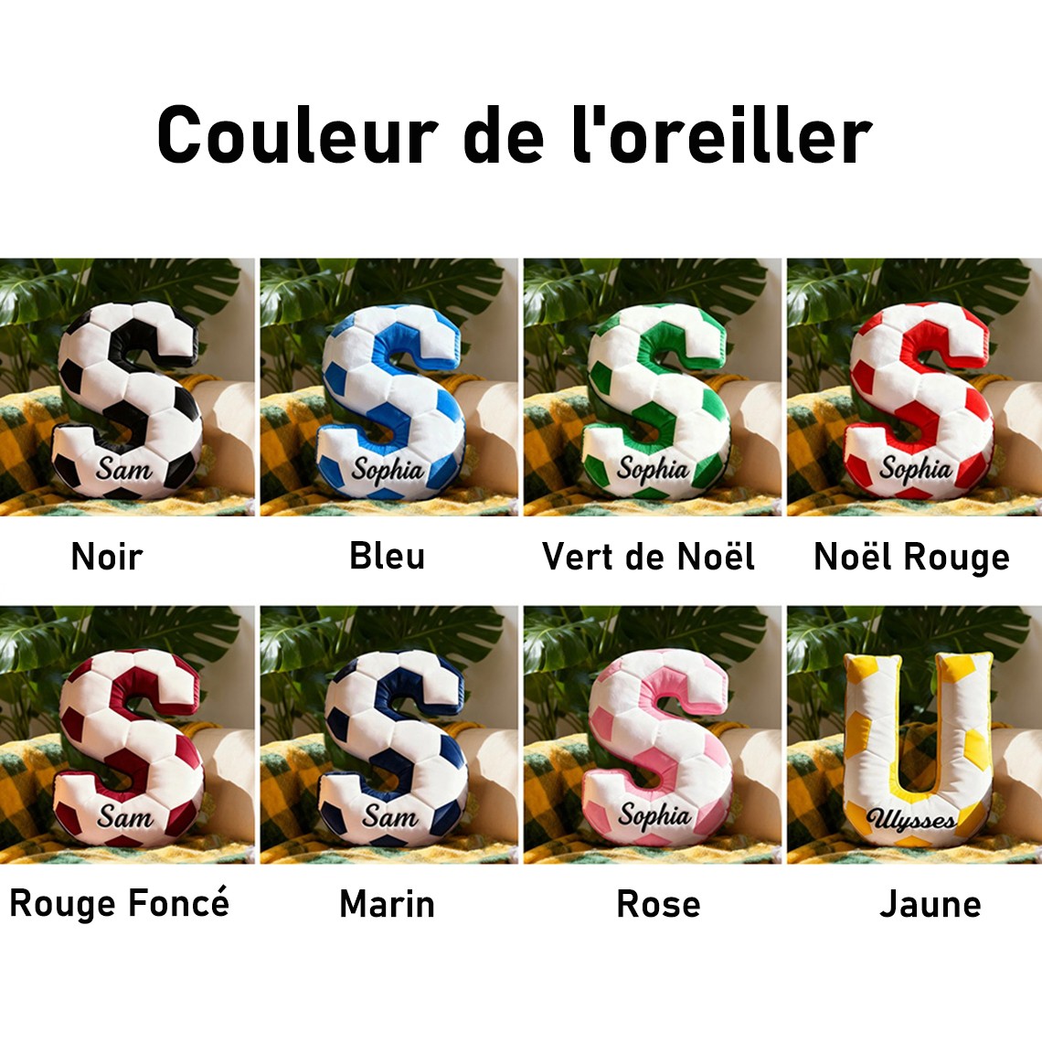 Coussin personnalisé sur le thème du football avec lettre et prénom Cadeau de Noël idéal pour les fans de foot