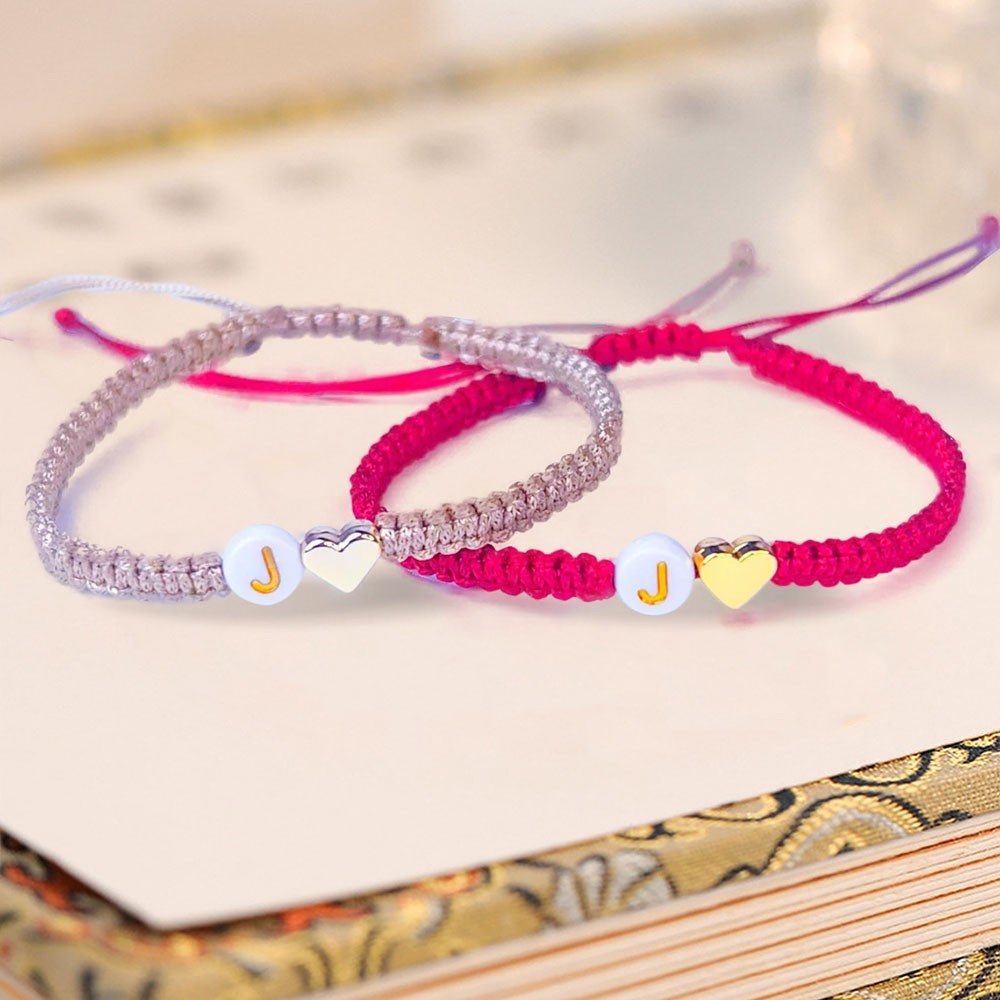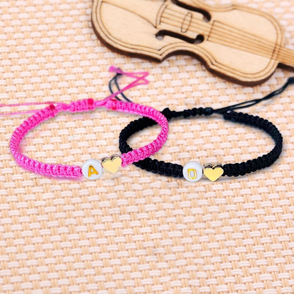 Ensemble personnalisé de 2 bracelets initiaux de couple avec coeur en or Cadeau Saint Valentin pour petit ami