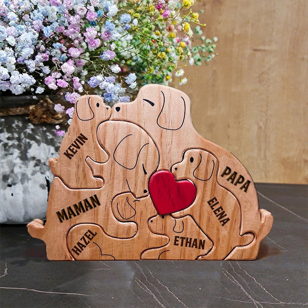 Famille de chiens personnalisée Nom gravé Puzzle en bois Cadeaux chaleureux Idées cadeaux pour la fête des mères