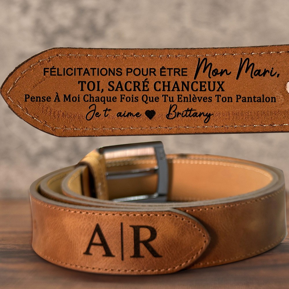 Félicitations D'Être Mon Époux Ceinture en Cuir Gravée Personnalisée Idées Cadeau d'Anniversaire pour Petit Ami Idées Cadeau de Noël