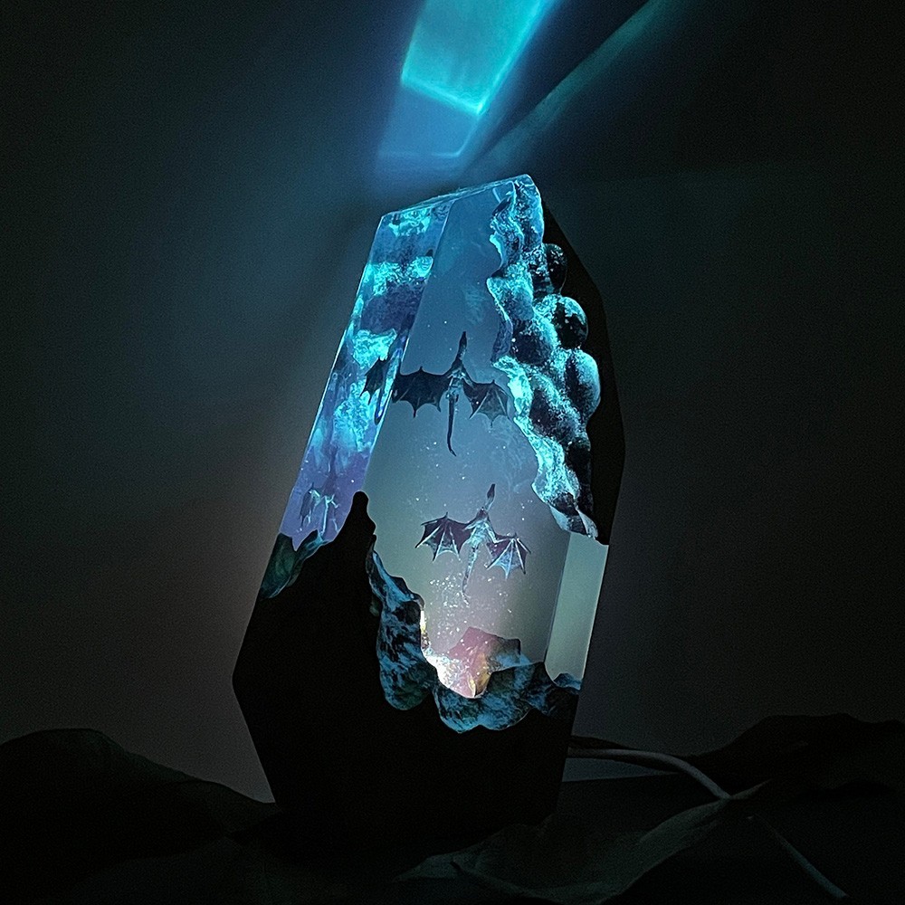 Lampe en bois en résine dragon de feu et dragon de glace