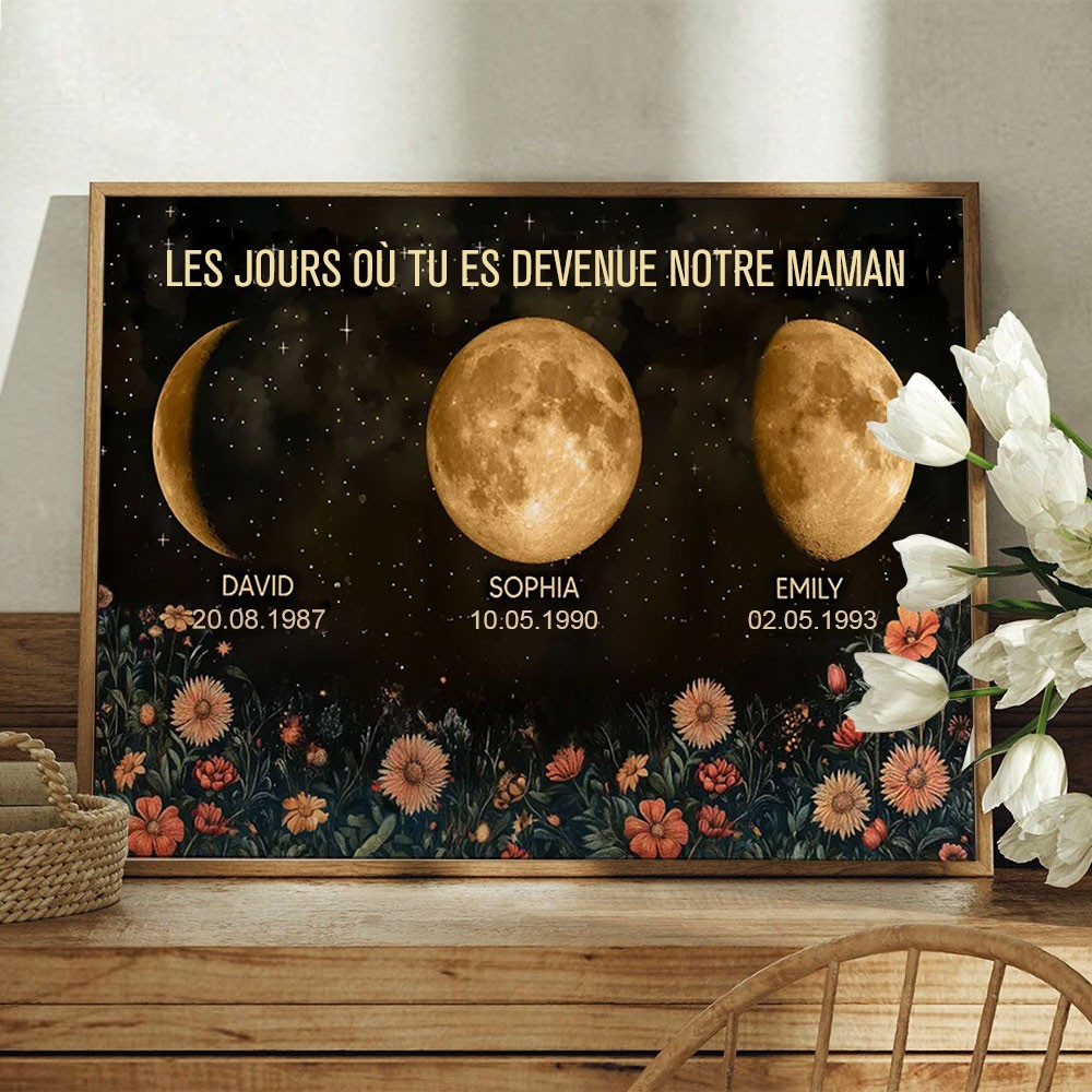 Les jours où tu es devenue notre maman Cadre de phases de lune personnalisé pour maman Cadeau de fête des mères