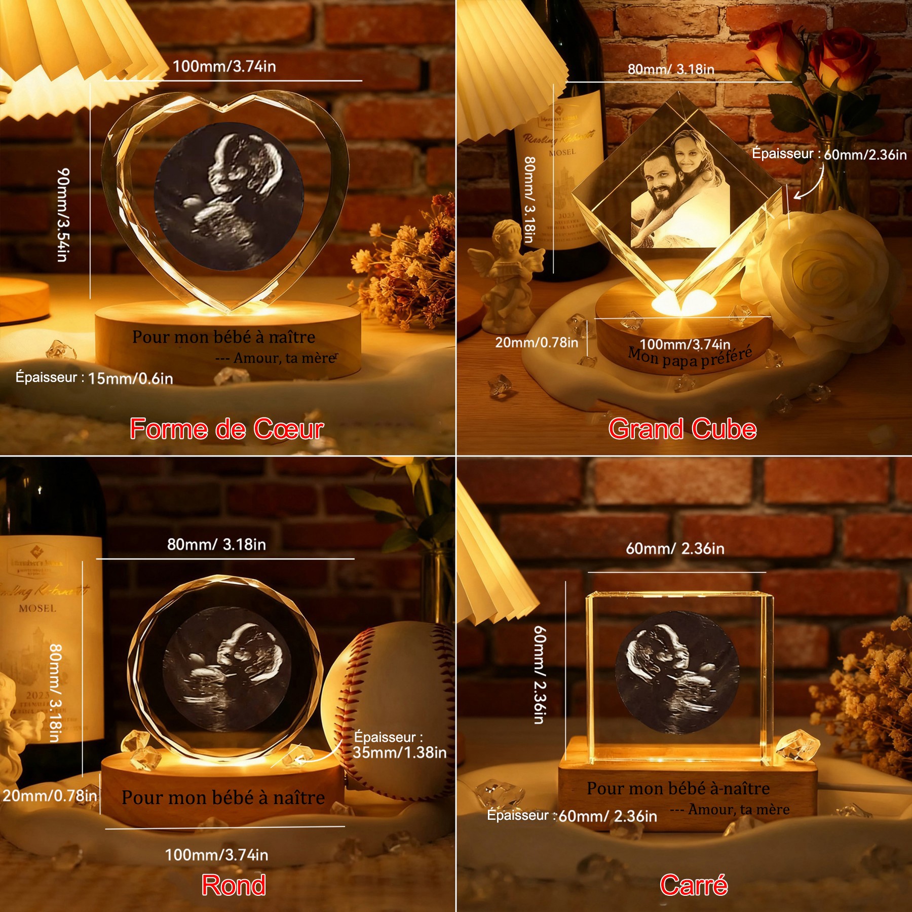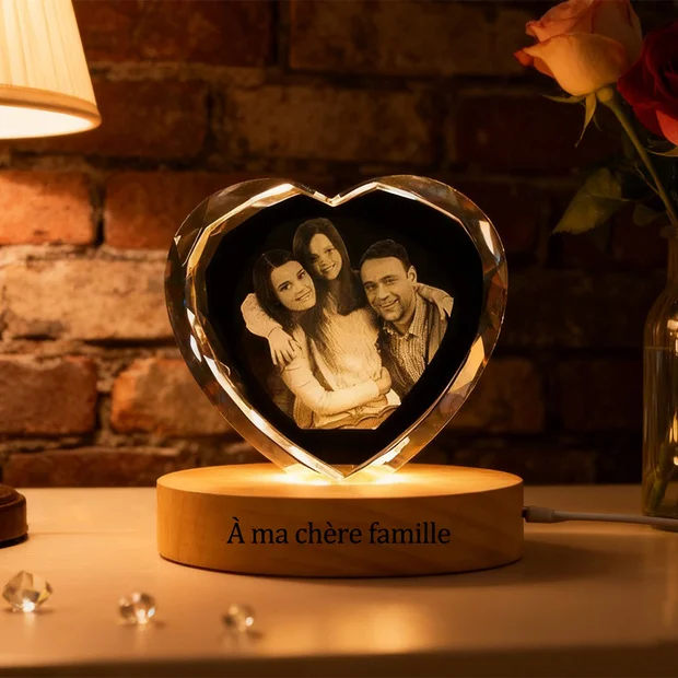 Luminaire Portrait 3D Cristal Photo Familial Personnalisé avec Socle Cadeau Familial Unique Cadeaux de Noël