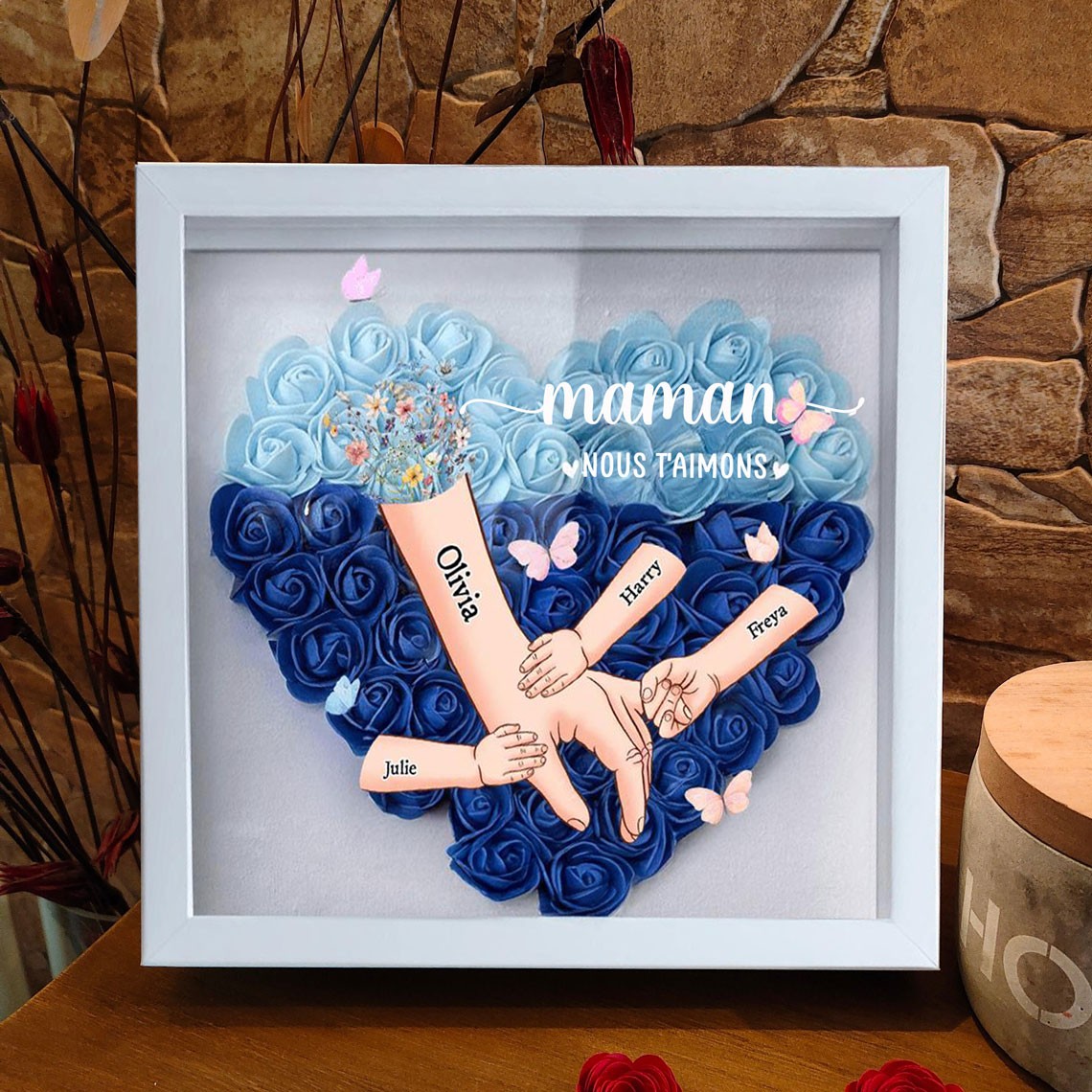 Maman nous t'aimons main dans la main boîte à fleurs cadeaux personnalisés pour maman cadeaux uniques pour la fête des mères