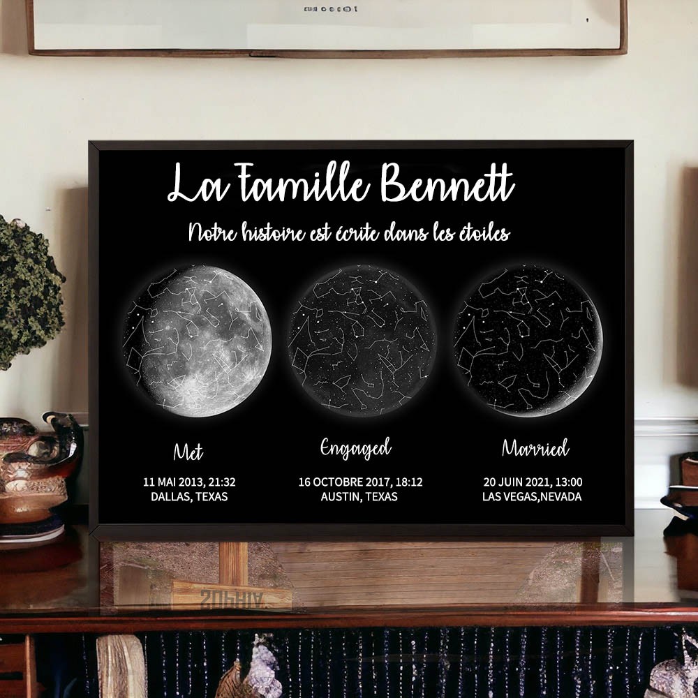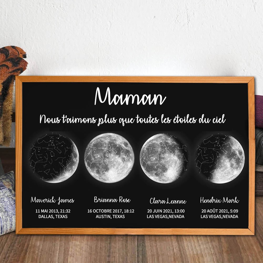Maman, Nous t'Aimons Plus que Toutes les étoiles dans le Ciel Cadre Personnalisé avec Carte du Ciel et Phases Lunaires pour Maman Cadeaux de Noël Uniques
