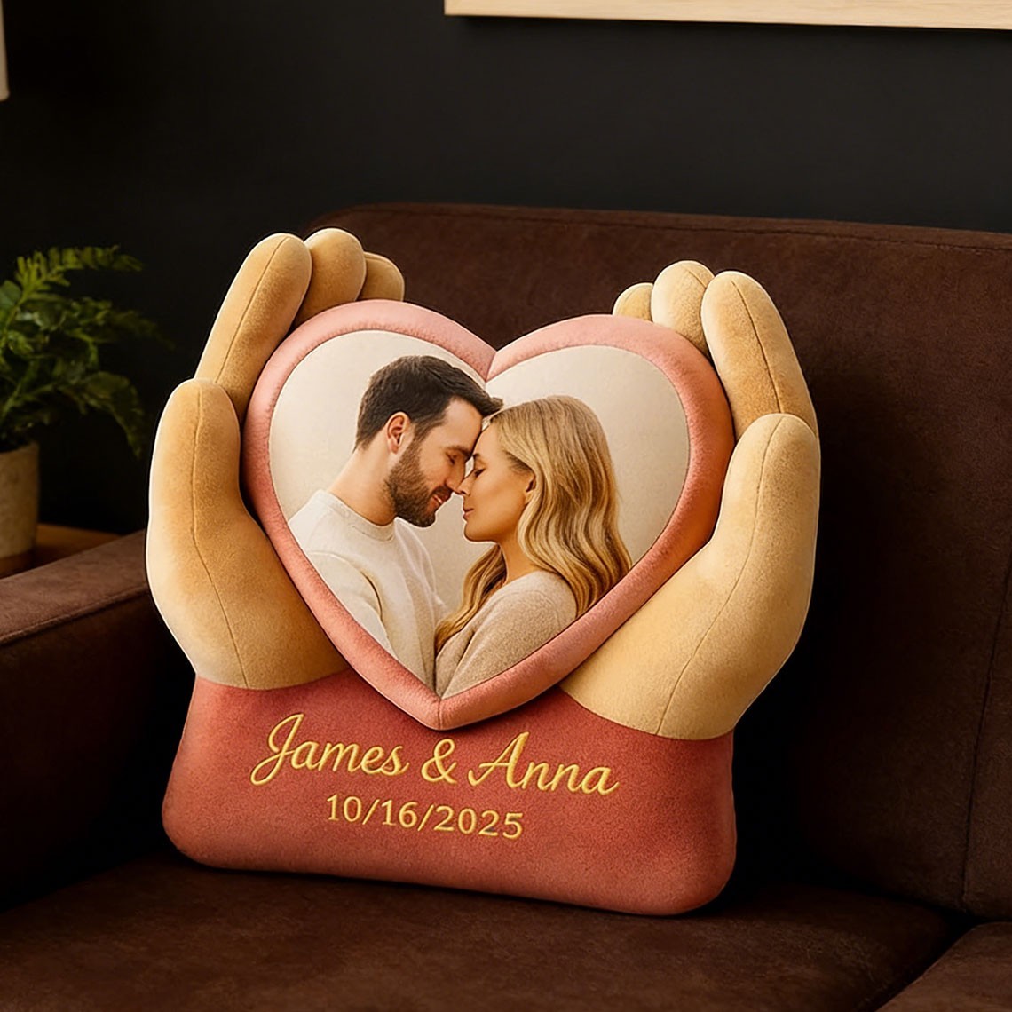Oreiller Photo de Couple Personnalisé avec Prénoms Idées Cadeau pour Couples Cadeaux d'Anniversaire Cadeau de Saint-Valentin