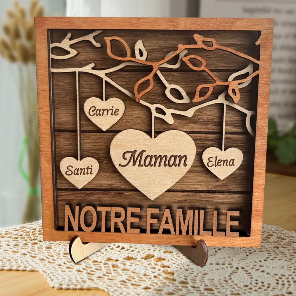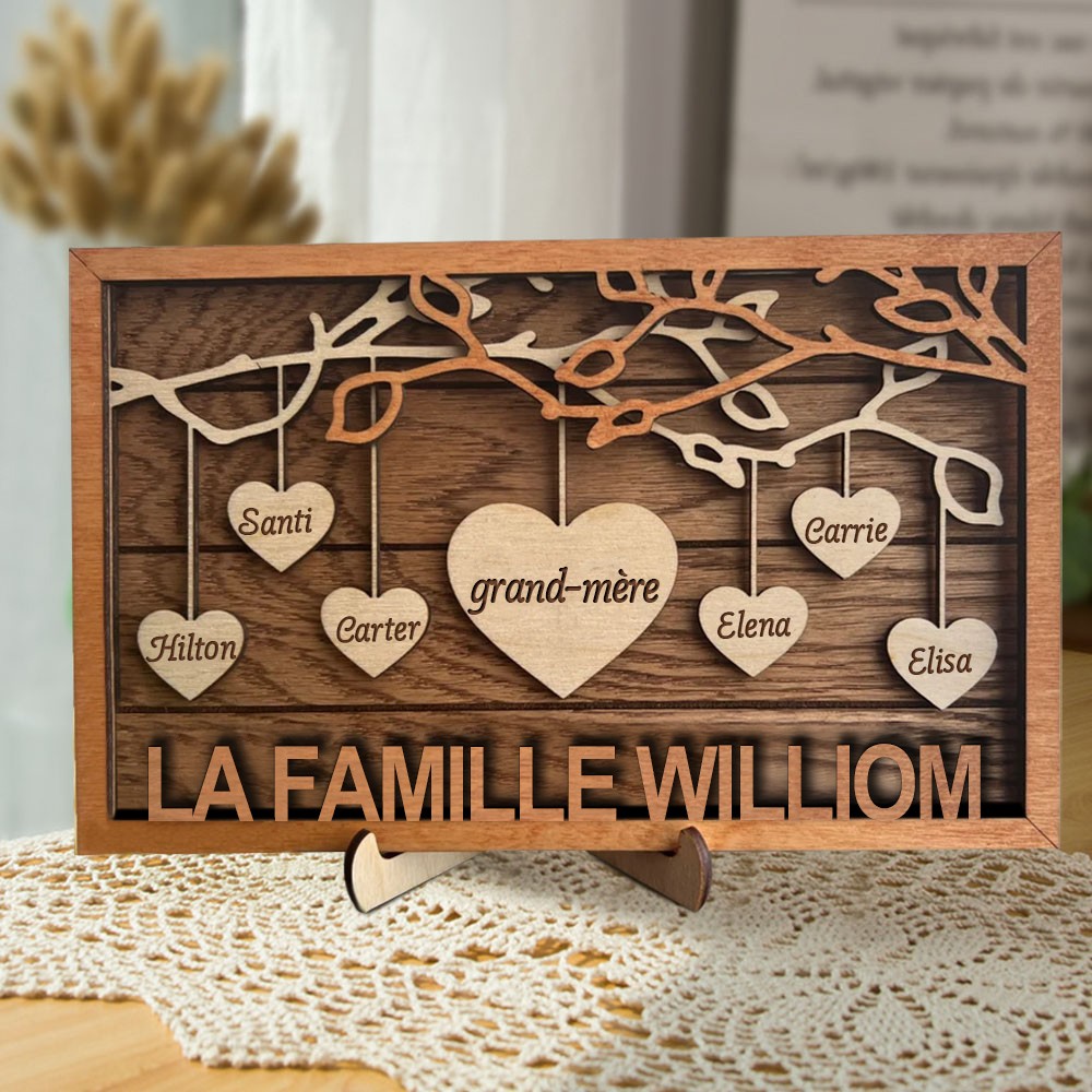 Panneau d'arbre généalogique avec cœurs suspendus, cadeau de fête des grands-mères, cadeau personnalisé pour maman