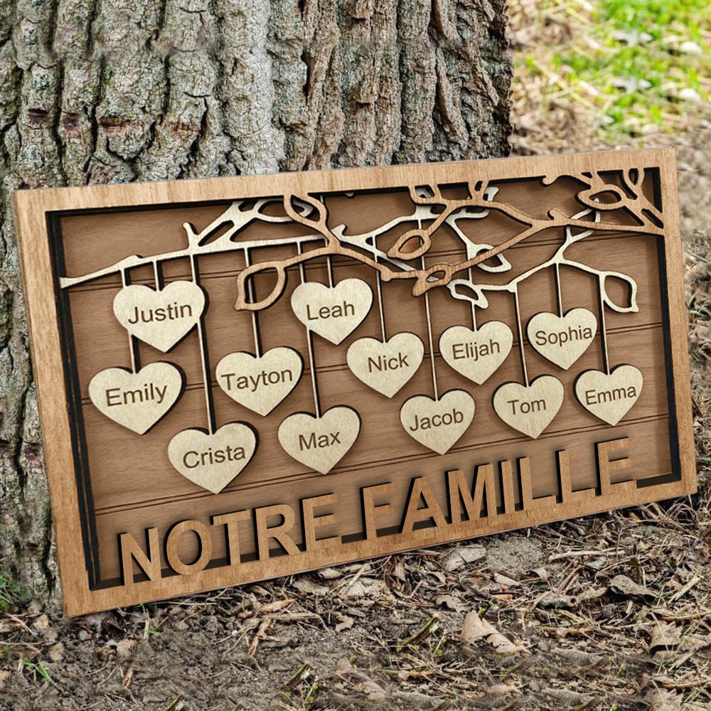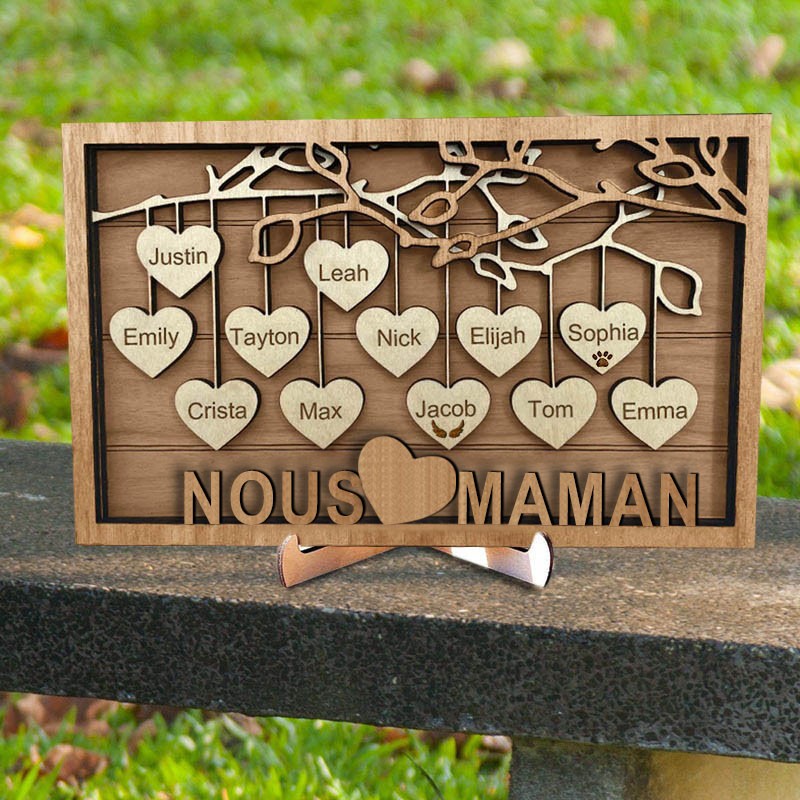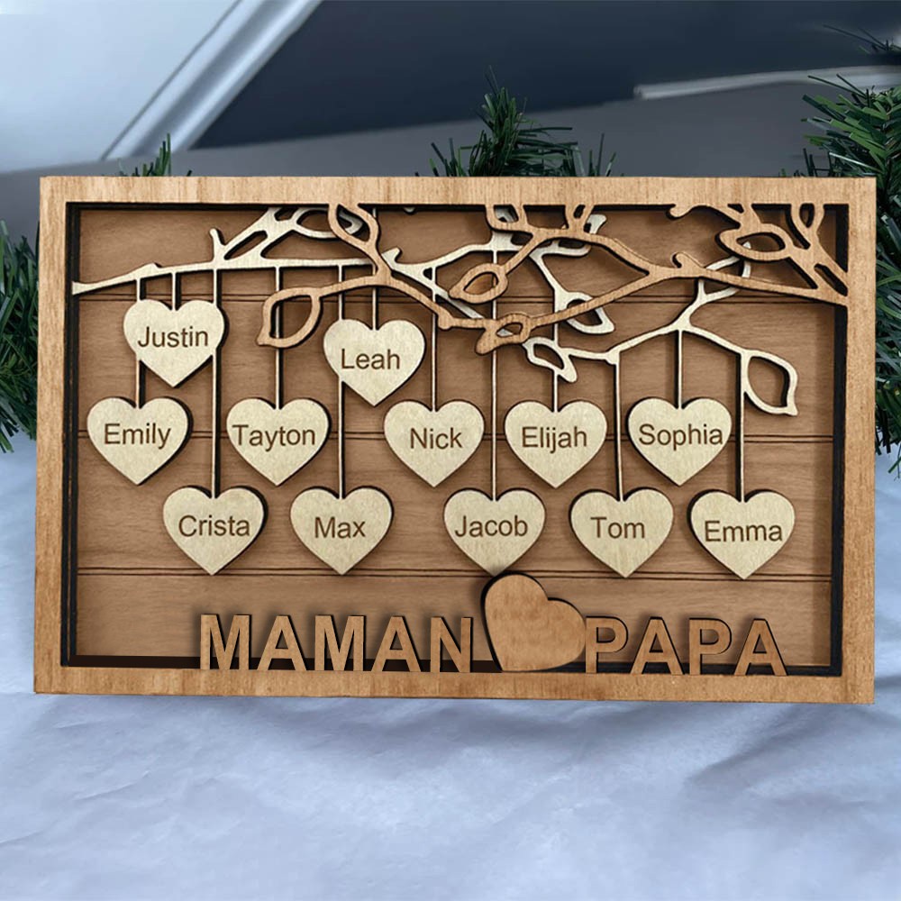 Panneau d'arbre généalogique personnalisé avec noms gravés, cadeau pour maman grand-mère