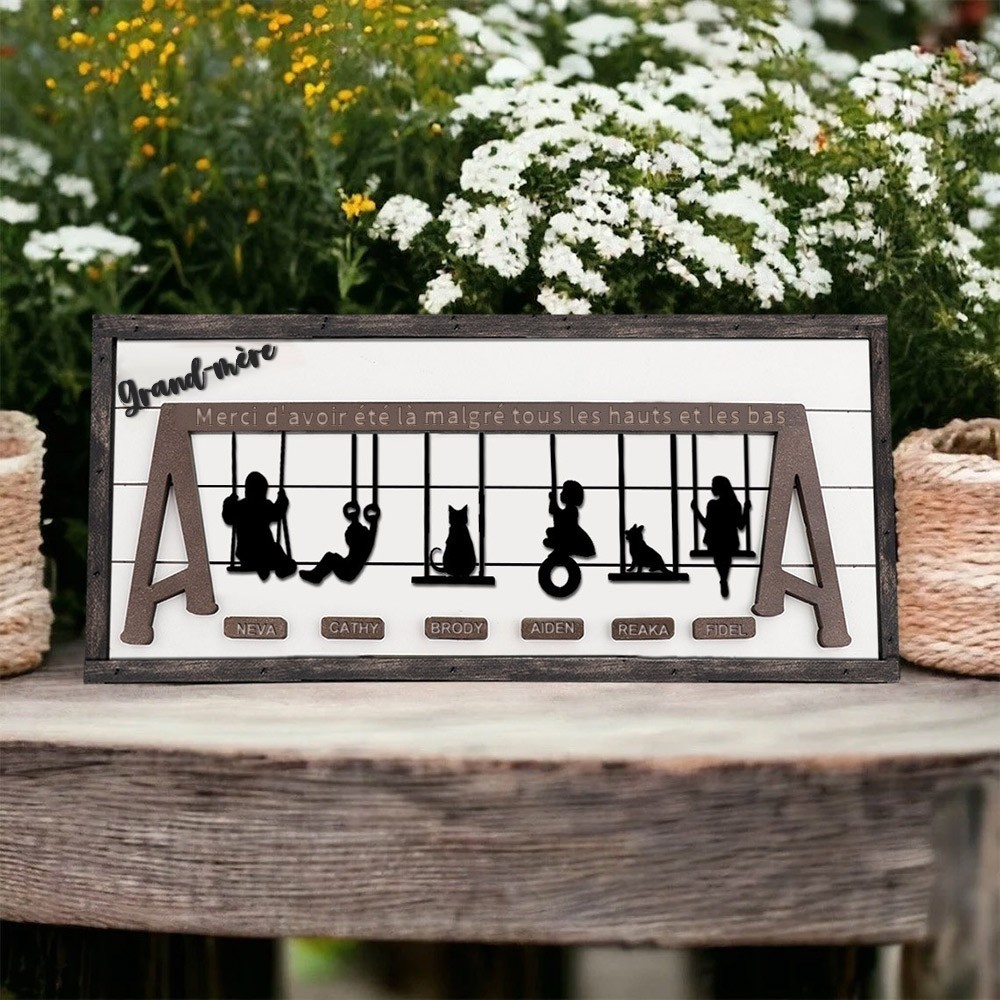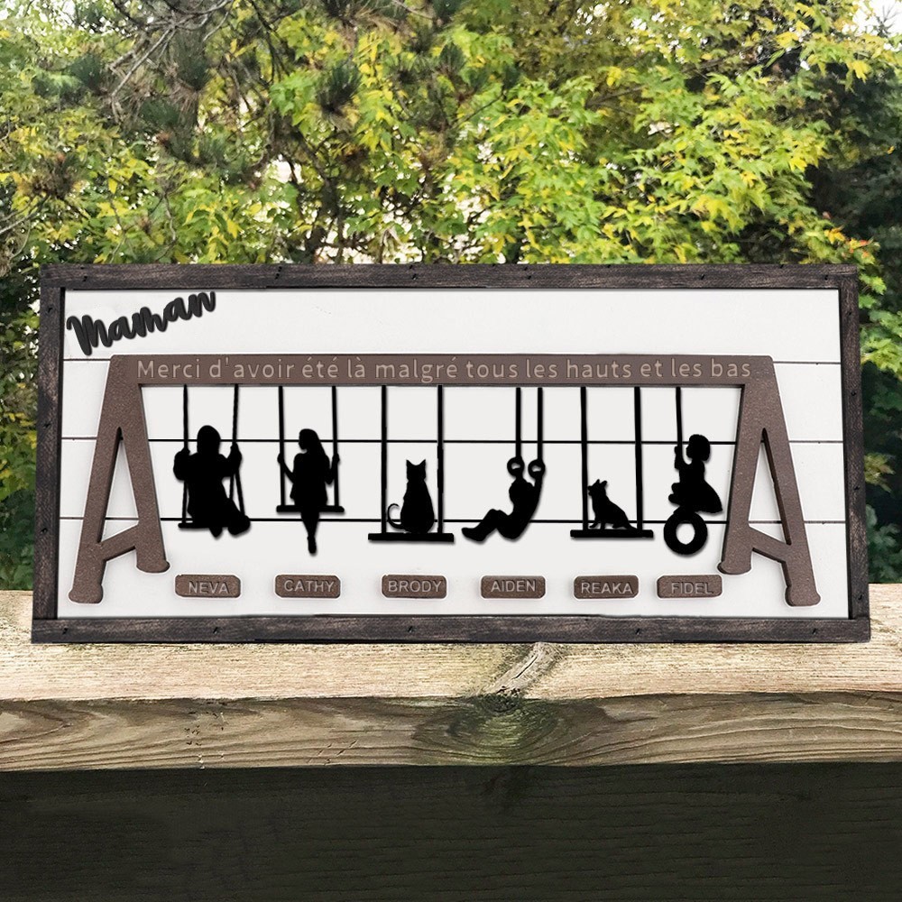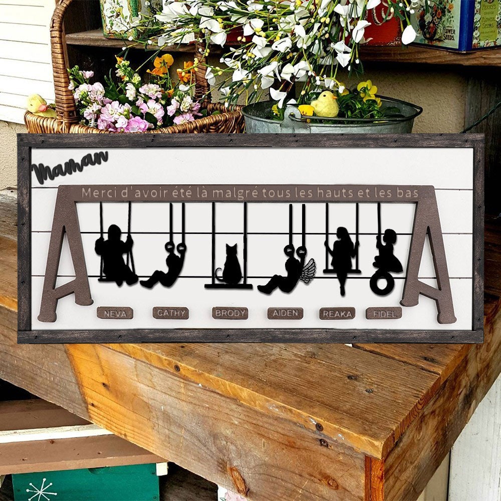 Panneau de balançoire personnalisé avec noms pour cadeau de fête des mères