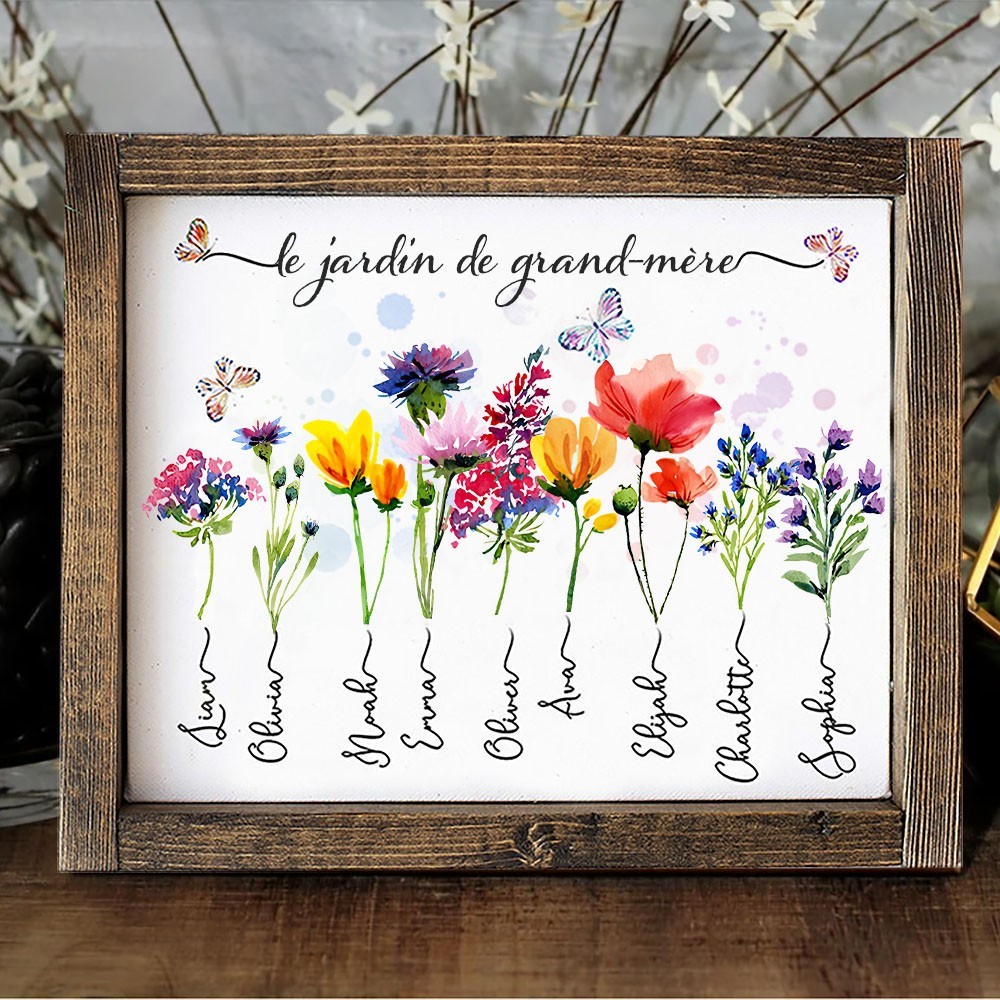 Panneau de naissance personnalisé du jardin de grand-mère avec le nom des petits-enfants, cadeau pour maman et grand-mère