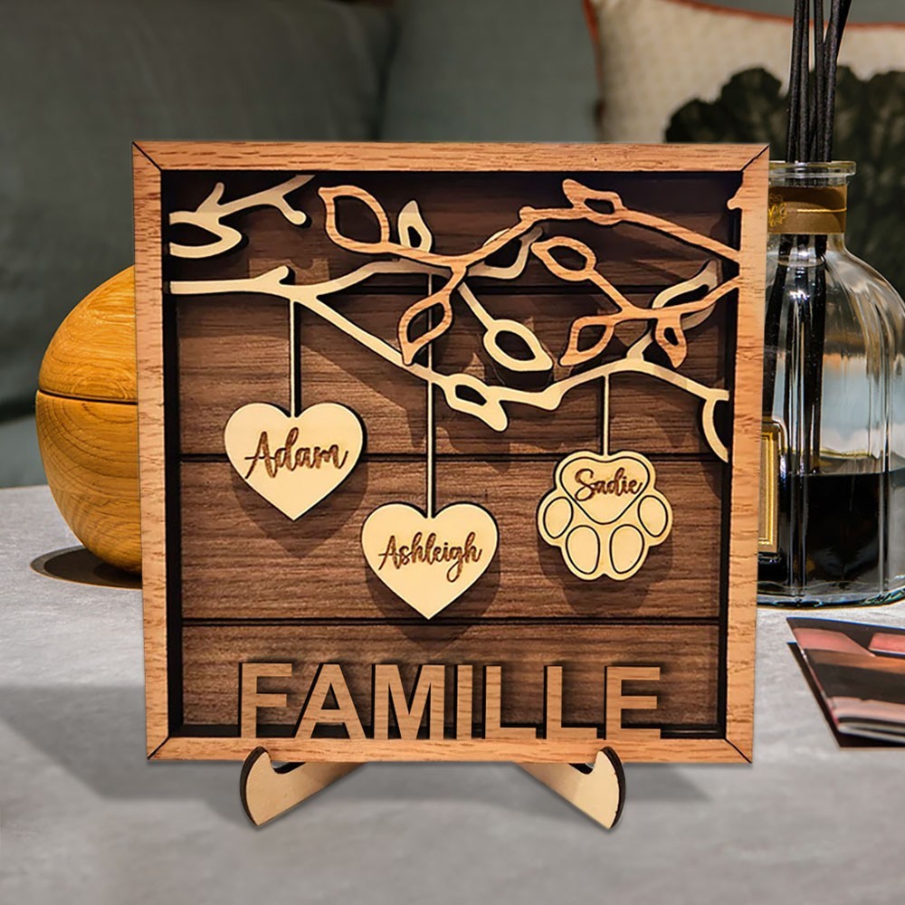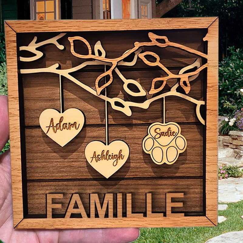 Panneau en bois d'arbre généalogique personnalisé, gravure de nom, décoration murale de maison, cadeaux pour maman