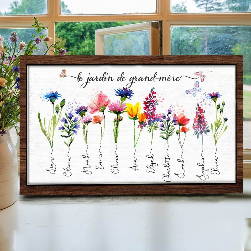 Panneau en bois personnalisé pour jardin de fleurs du mois de naissance de grand-mère, cadeau de Noël pour grand-mère maman