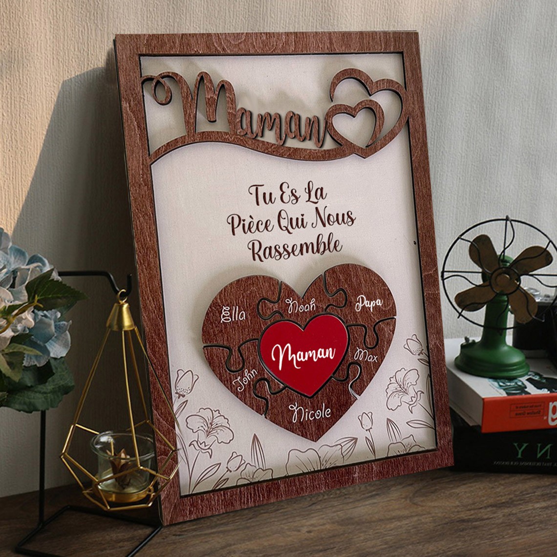 Panneau personnalisé en bois représentant une pièce de puzzle pour maman avec les noms des enfants Idées cadeaux pour la fête des mères