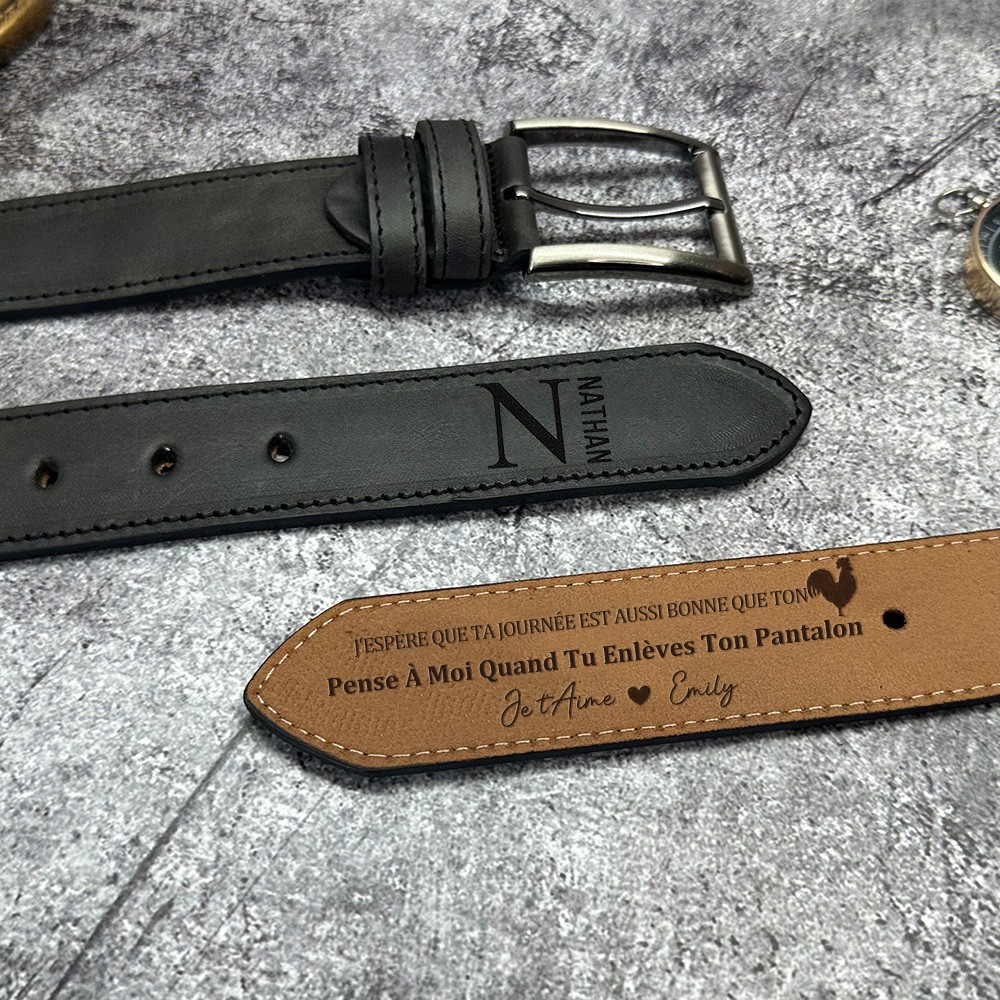 Pense À Moi À Chaque Retrait De Ton Pantalon Ceinture en Cuir pour Homme Sur Mesure Cadeau d'Anniversaire Cadeau de Noël