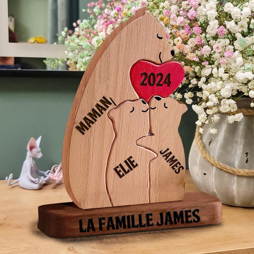 Personnalisé en bois étreintant noms d’ours Puzzle de famille avec support