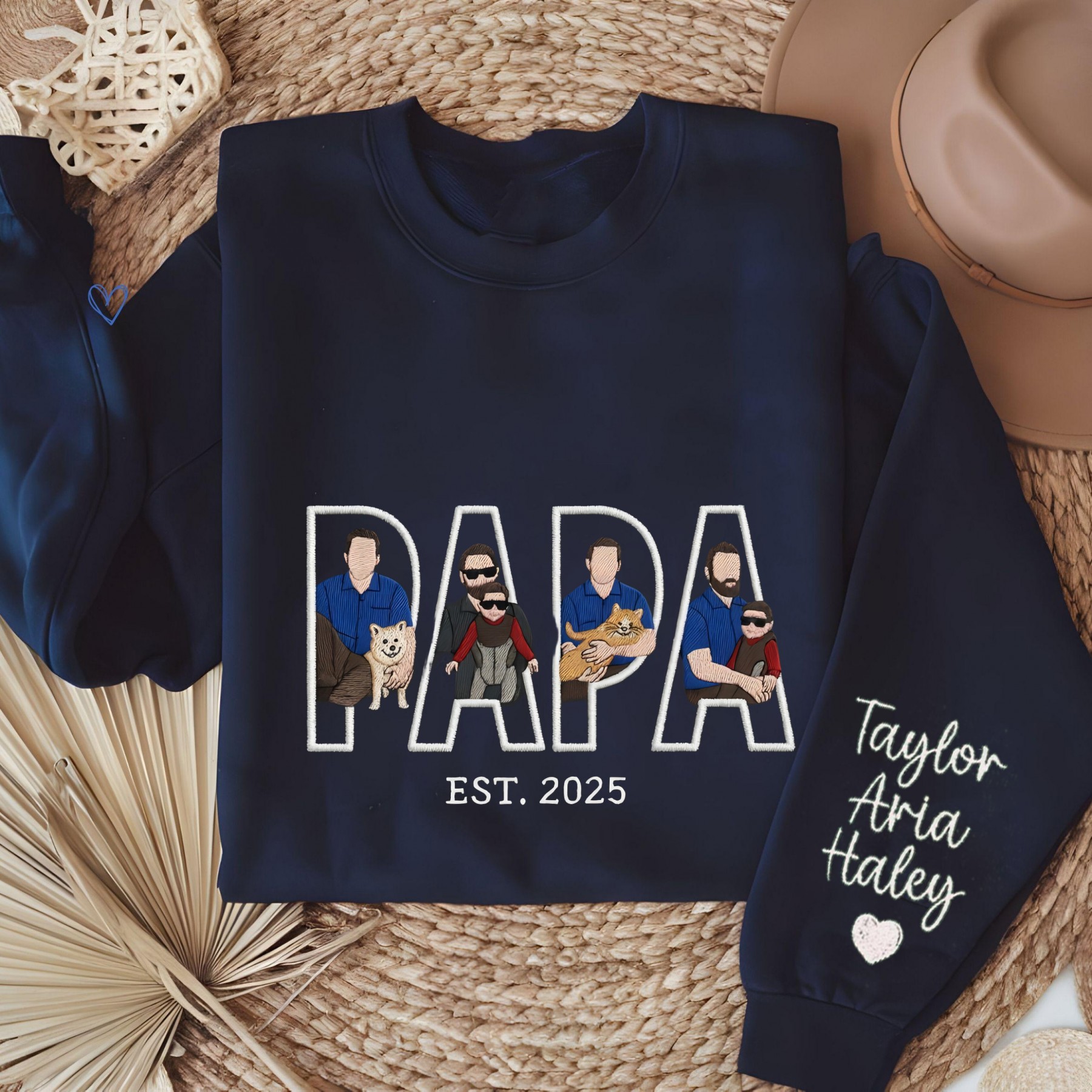 Personnalisé Papa brodé Photo Portrait sweat-shirt cadeaux pour papa grand-père fête des pères cadeau