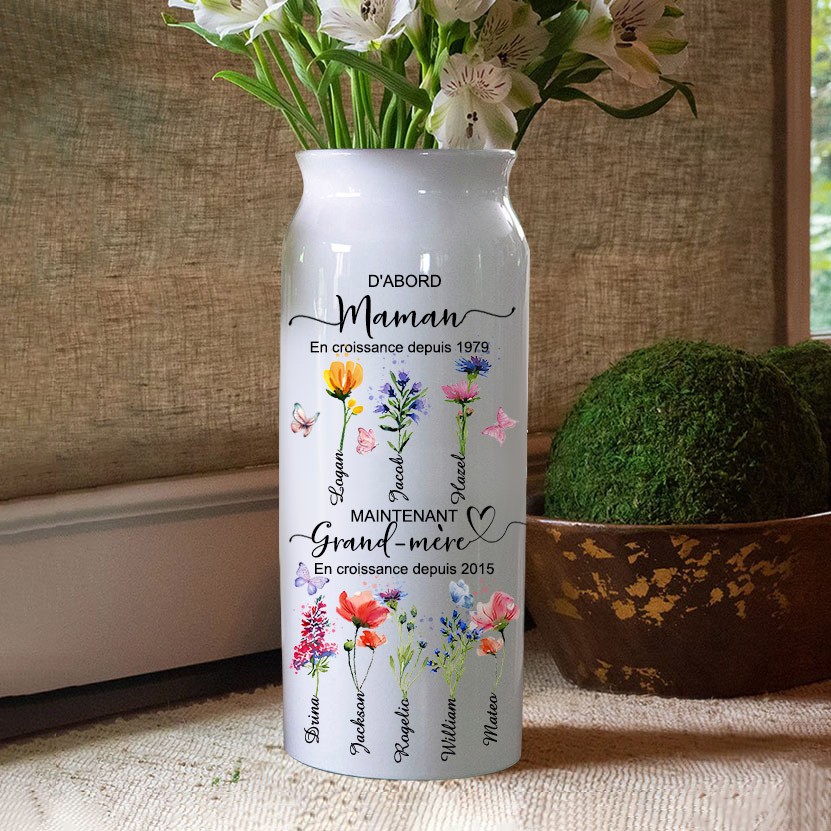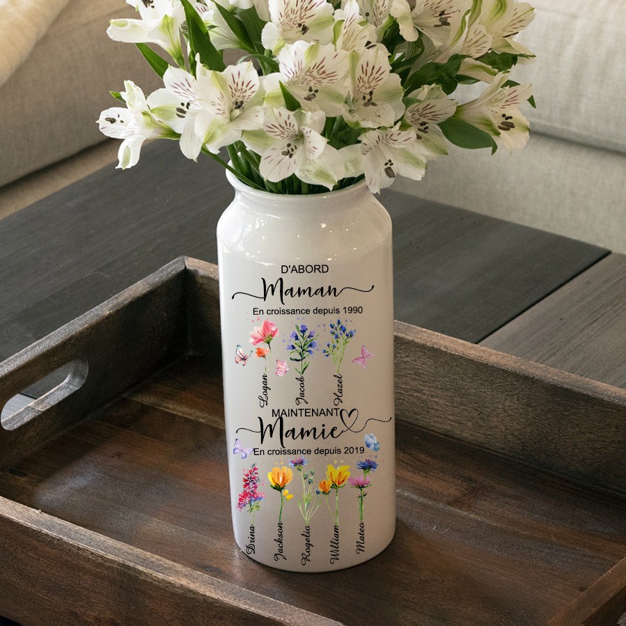 Personnalisé première maman maintenant grand-mère naissance Vase de fleurs cadeau fête des mères