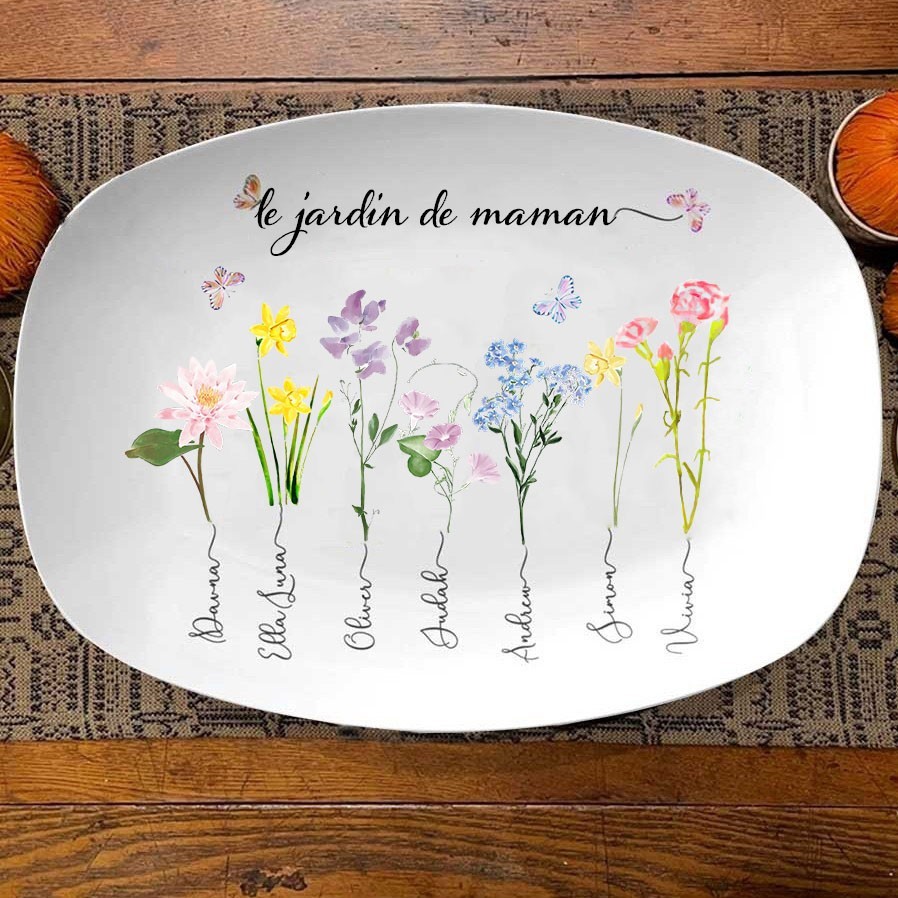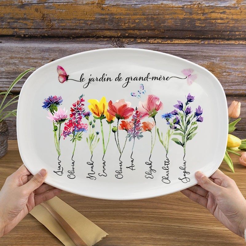 Plateau de fleurs de naissance de jardin de grand-mère personnalisé avec noms de petits-enfants, cadeau unique pour grand-mère maman