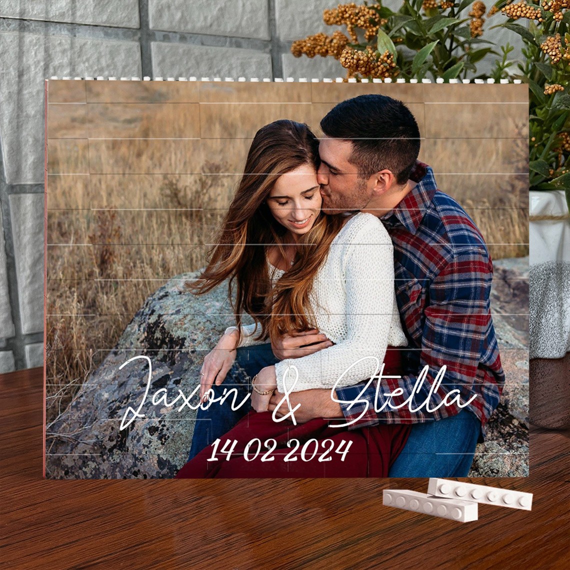 Puzzle de Construction en Briques Photo Personnalisé Cadeau-Souvenir pour Couples Cadeaux de Saint-Valentin pour Petit-Ami et Mari