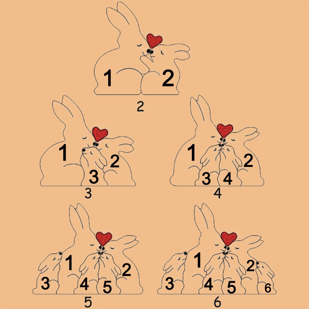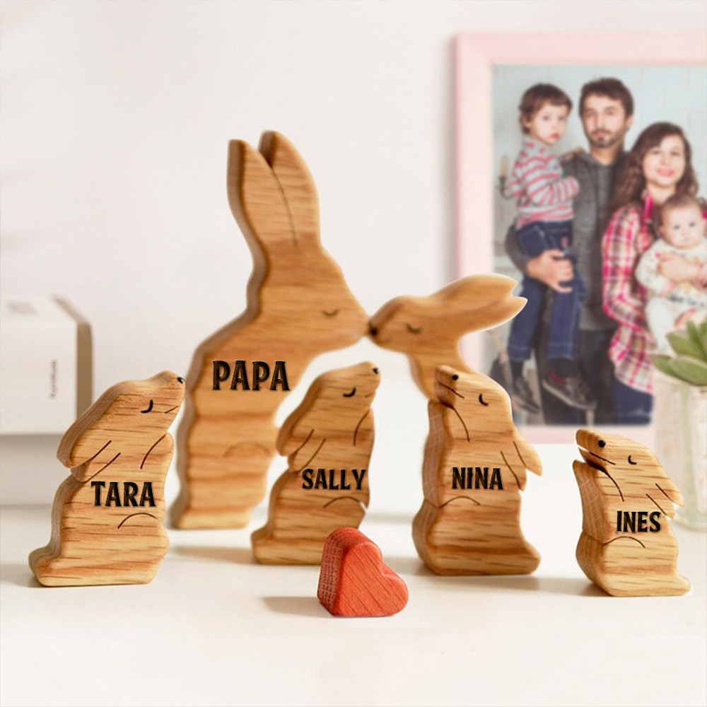 Puzzle familial de lapins en bois, figurines d'animaux, cadeaux souvenirs personnalisés, idées de cadeaux de Noël