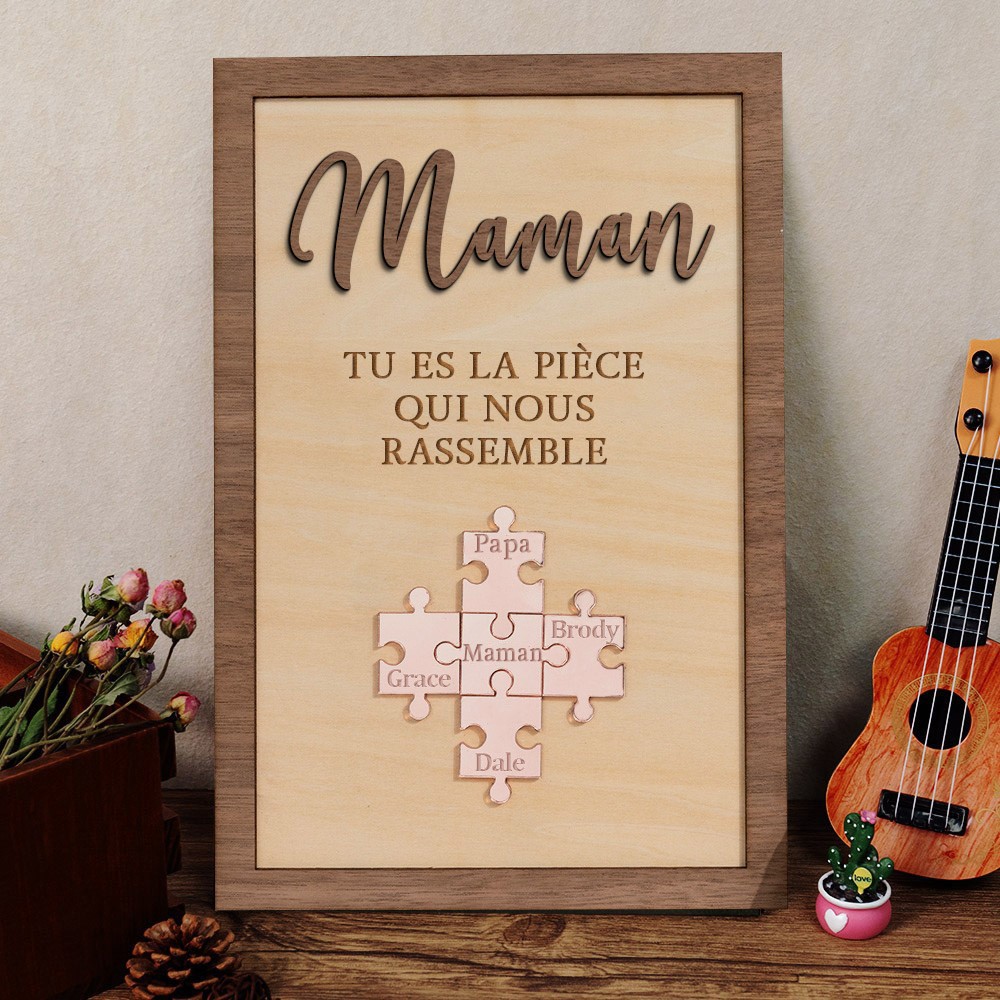 Puzzle personnalisé avec noms Maman, tu es la pièce qui nous rassemble Idées cadeaux pour la fête des mères