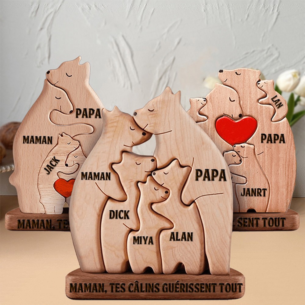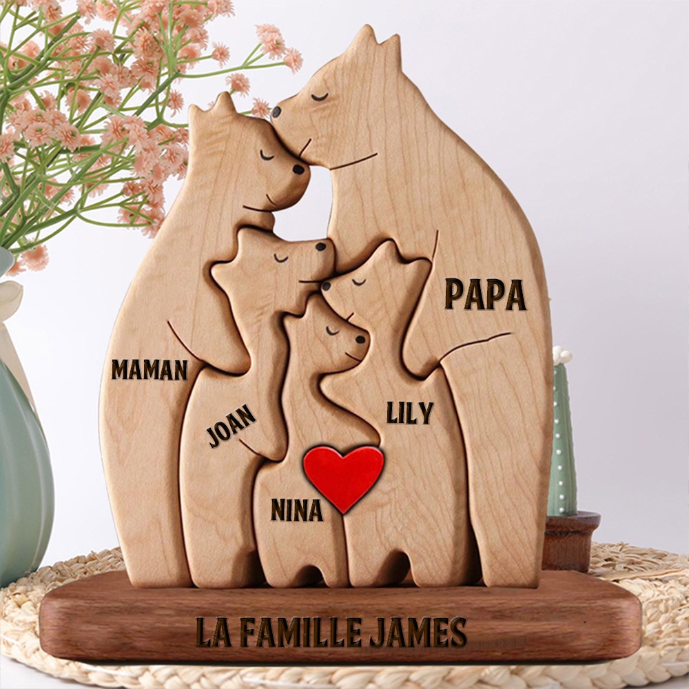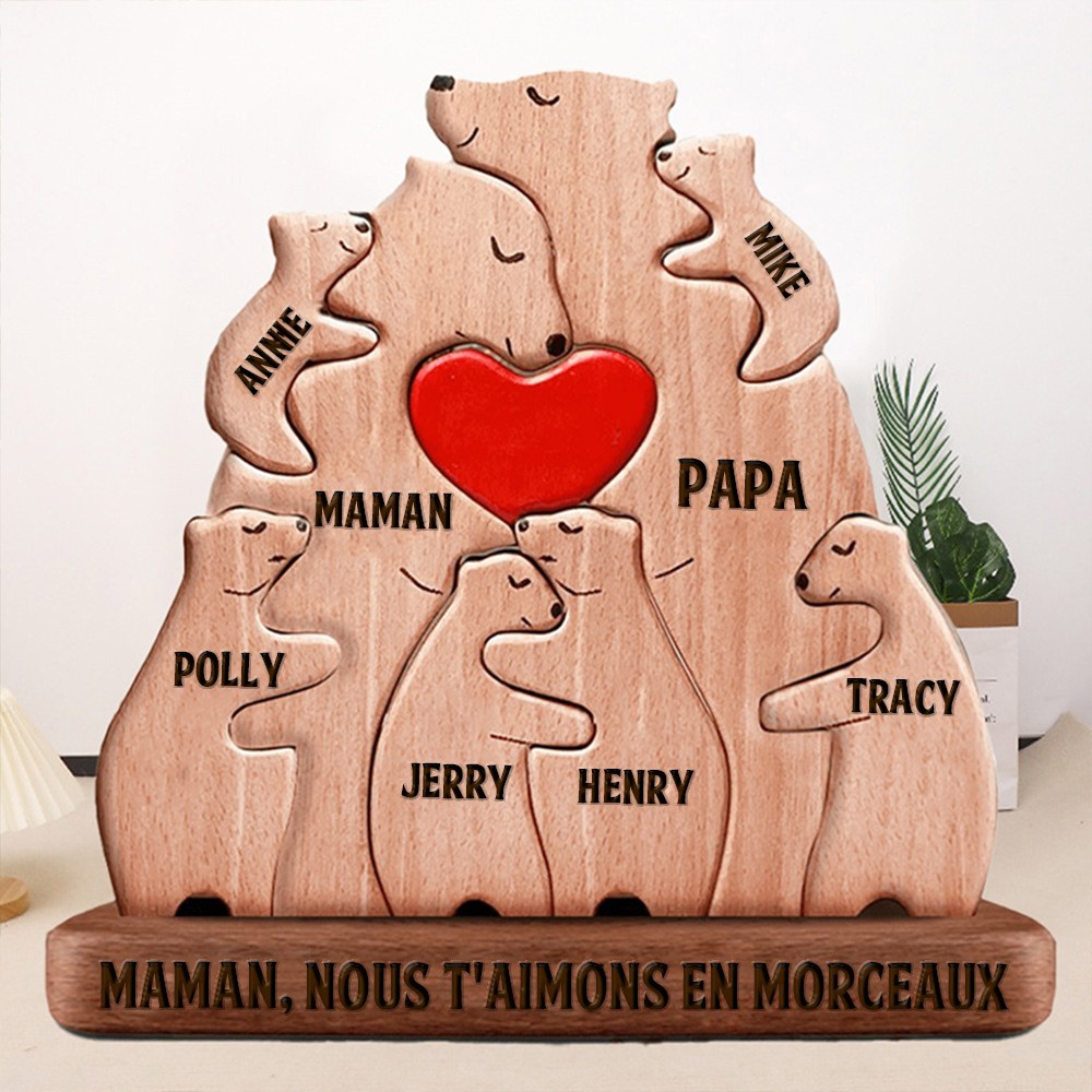 Puzzle personnalisé de famille d’ours en bois avec des noms cadeaux de souvenir de famille cadeau de fête des mères
