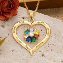 Collier personnalisé en forme de cœur avec noms de famille et pierres de naissance - Cadeau unique pour maman ou grand-mère
