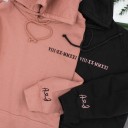 Sweat-shirt à Capuche Couple Personnalisé Apparié Date en Chiffres Romains Brodé avec Initiale sur la Manche Cadeaux pour Anniversaire Saint-Valentin