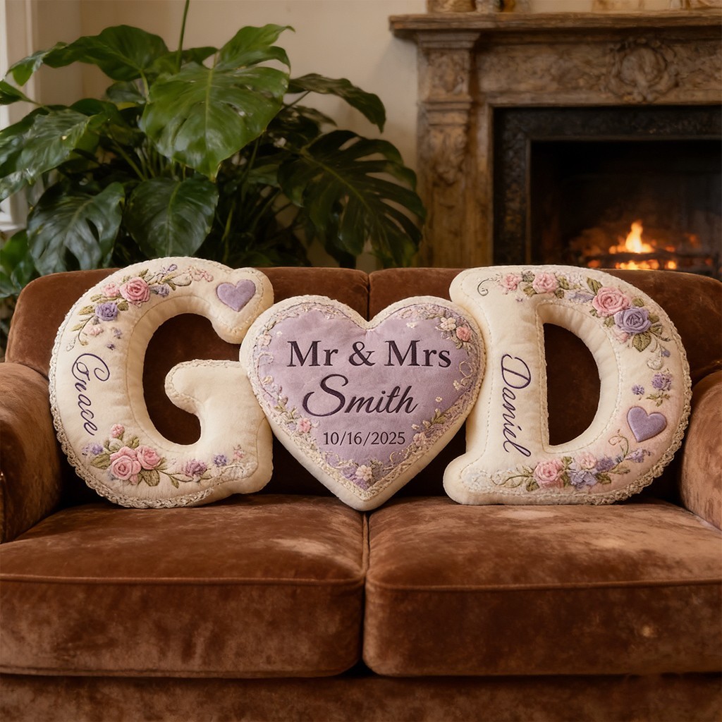 Set d'Oreillers Forme Lettres de Couple Sur Mesure avec Motif Fleuri Cadeaux Uniques pour Anniversaire et Saint-Valentin