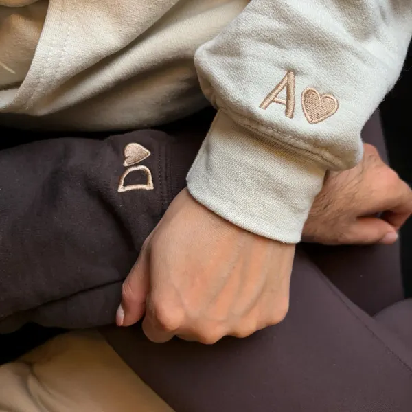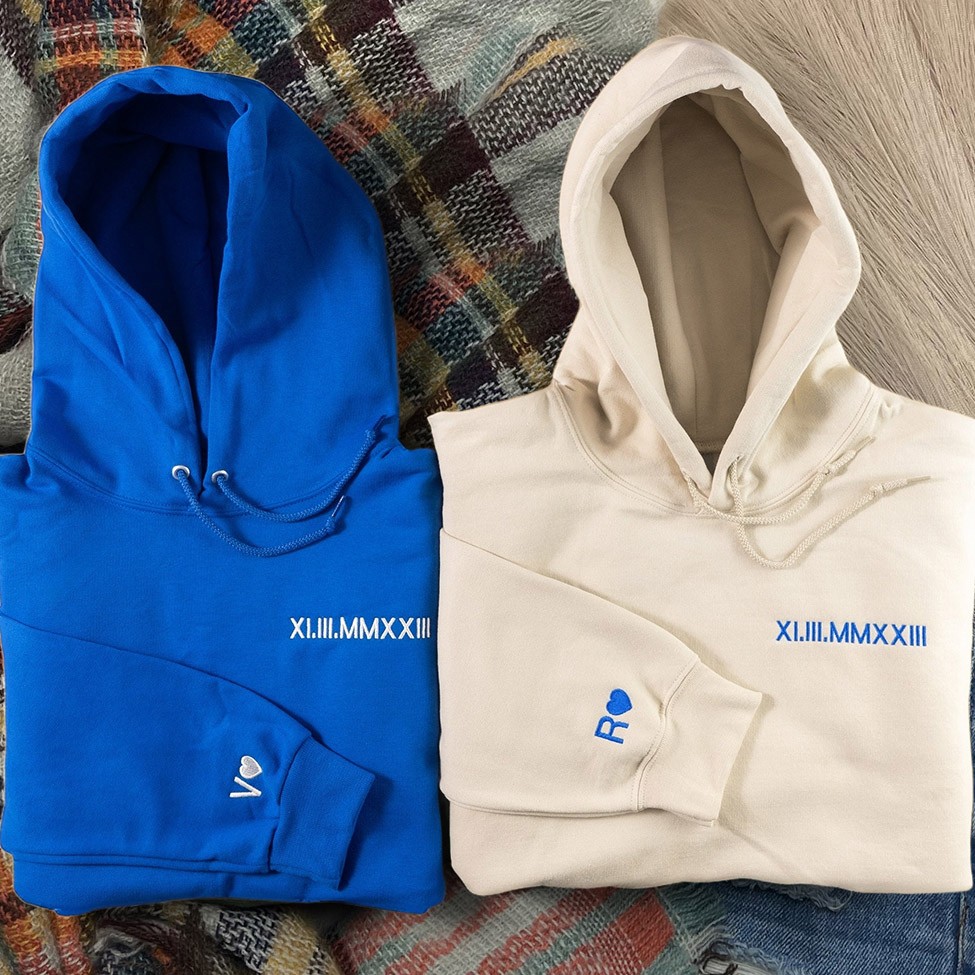 Sweat à capuche personnalisé avec chiffres romains brodés et initiale sur la manche cadeau d'anniversaire cadeau de Saint-Valentin pour les couples