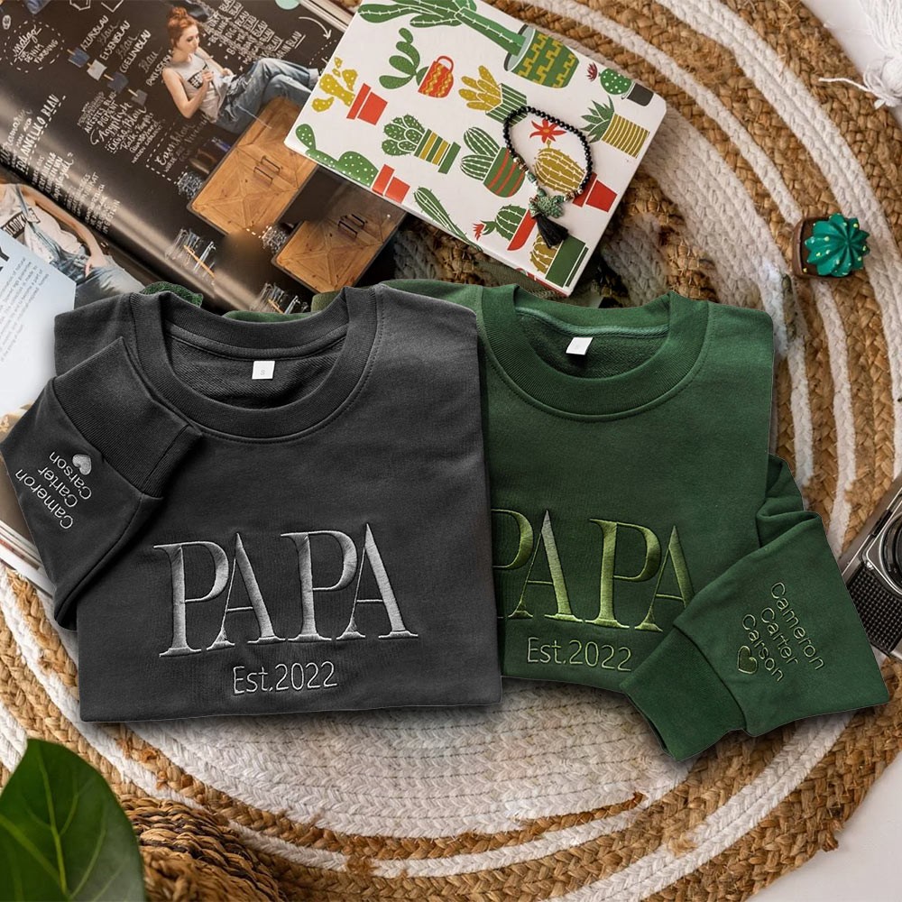 Sweat-shirt Papa brodé personnalisé avec date Sweat à capuche personnalisé Idées cadeaux uniques pour la fête des pères