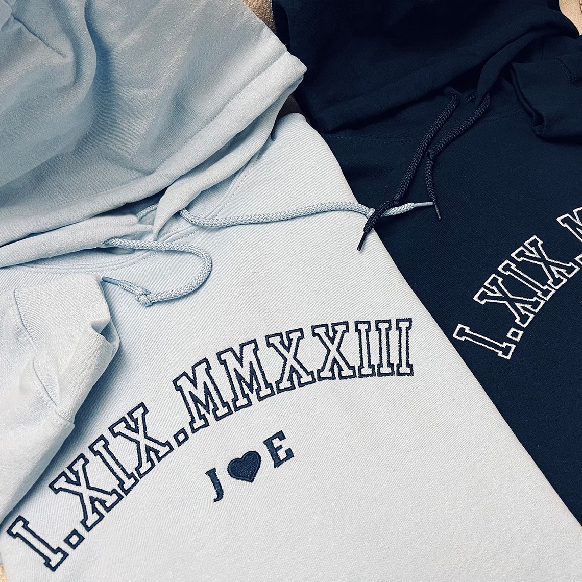 Sweats à capuche assortis avec chiffres romains brodés pour couples cadeaux d'anniversaire cadeau de Saint-Valentin pour couple
