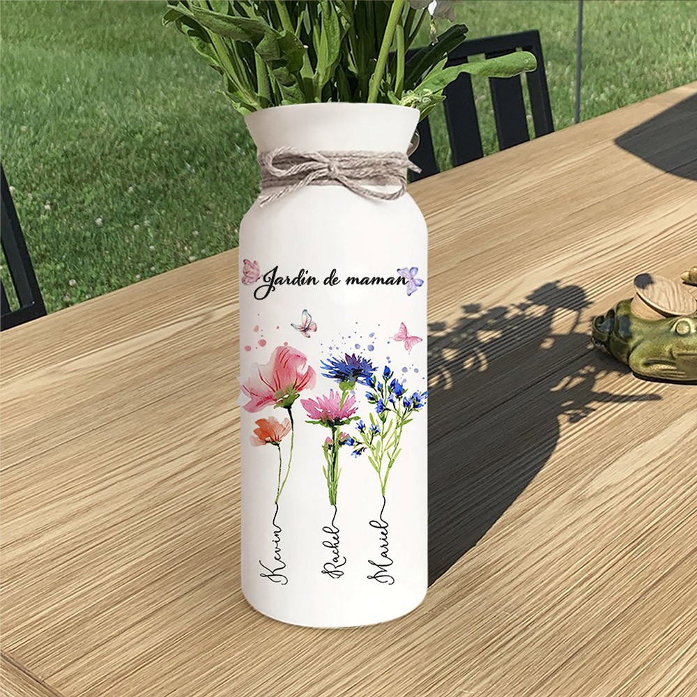 Vase à fleurs de naissance personnalisé avec noms d'enfants, cadeau de fête des mères