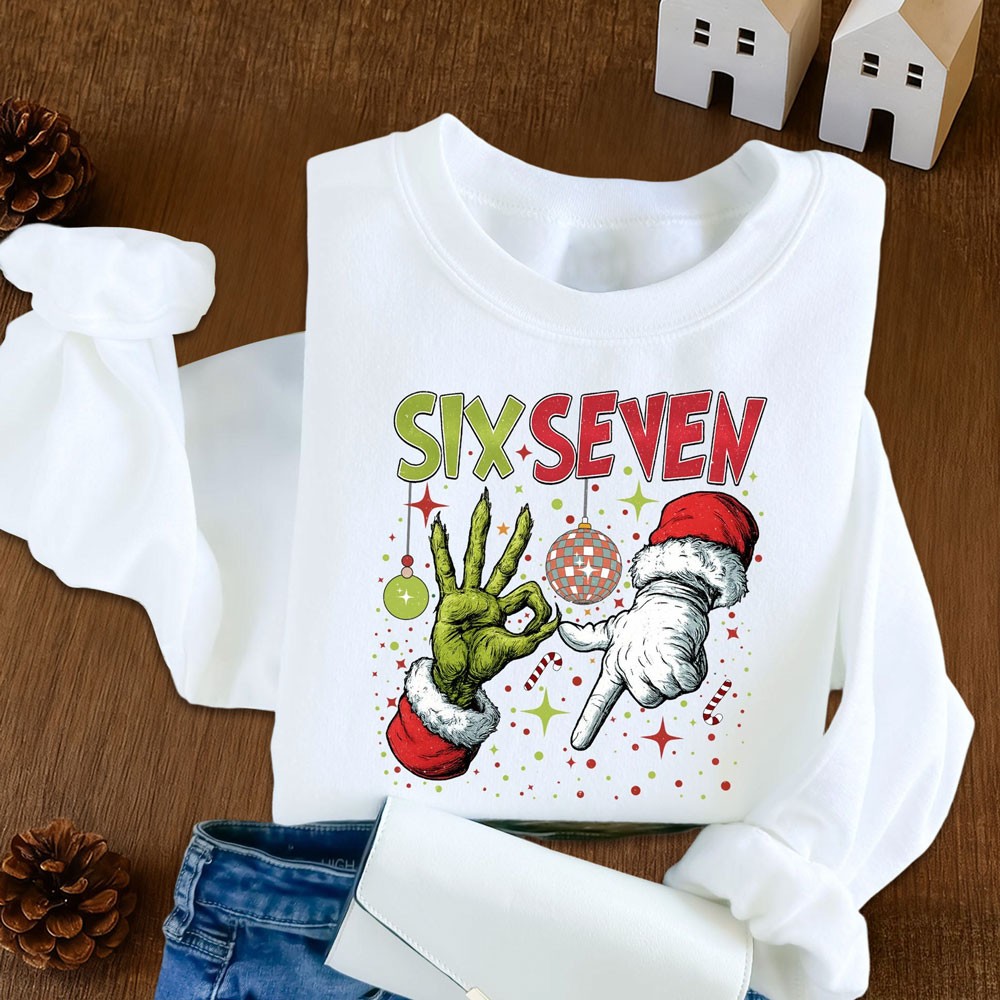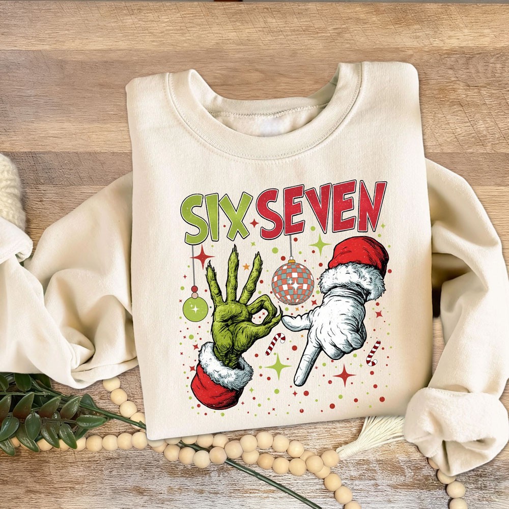 Funny Six Seven Meme Christmas Santa Hand Sign Sweatshirt Unique Christmas Gifts
