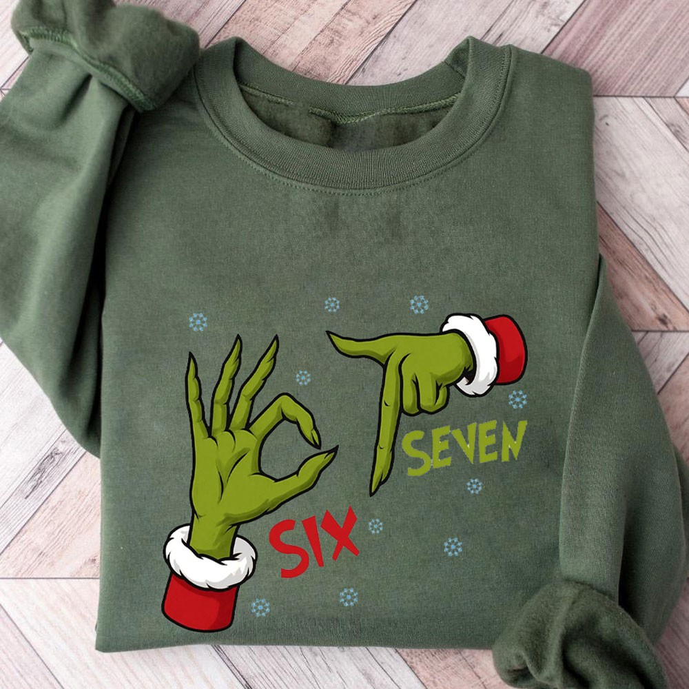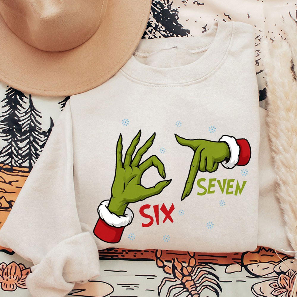 Funny Six Seven Meme Christmas Santa Hand Sign Sweatshirt Unique Christmas Gifts