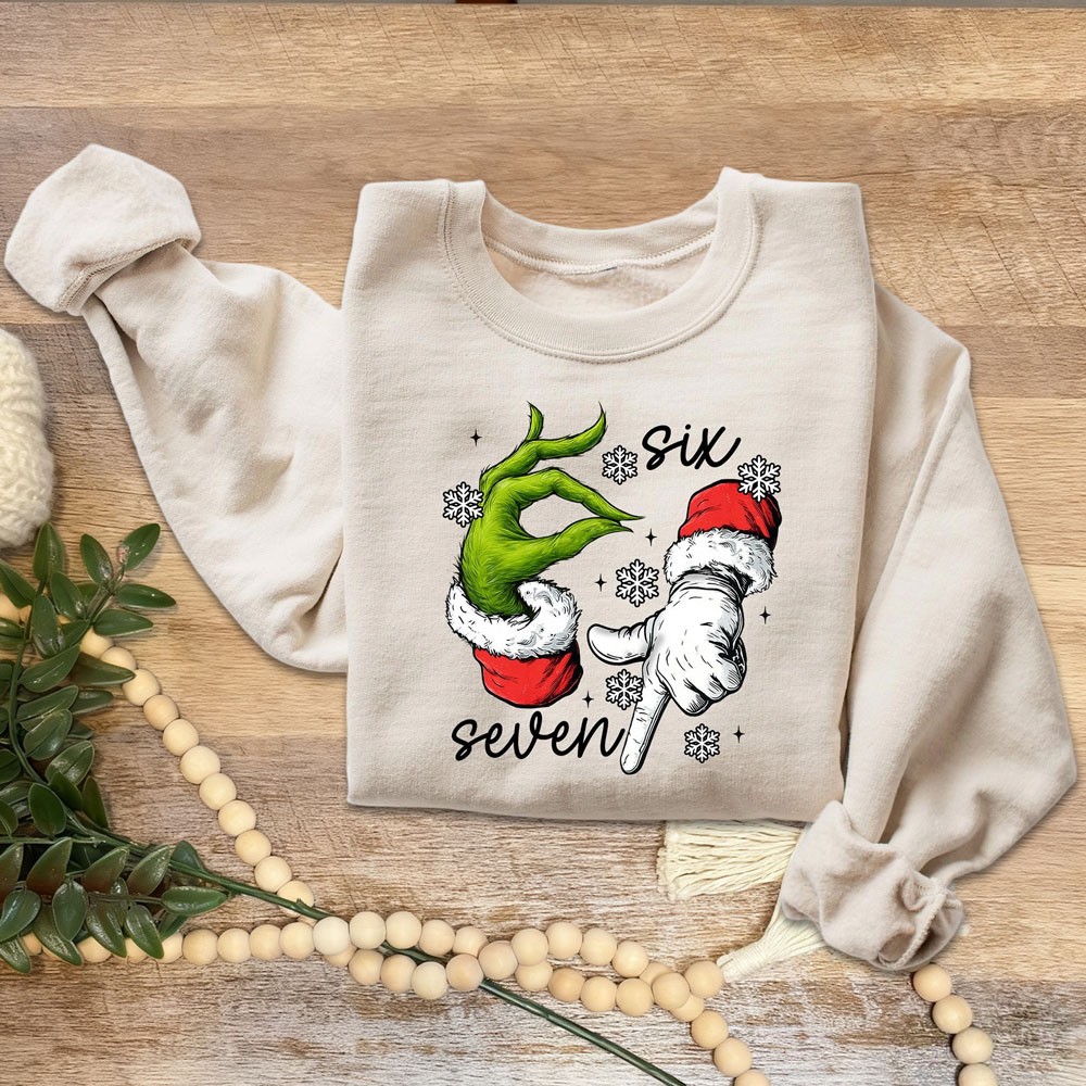 Funny Six Seven Meme Christmas Santa Hand Sign Sweatshirt Unique Christmas Gifts