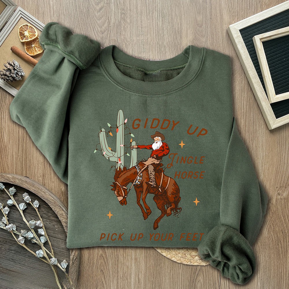 Giddy Up Jingle Horse Pick Up Your Feet Christmas Sweatshirt Hoodie Gifts for Her Unique Christmas Gift