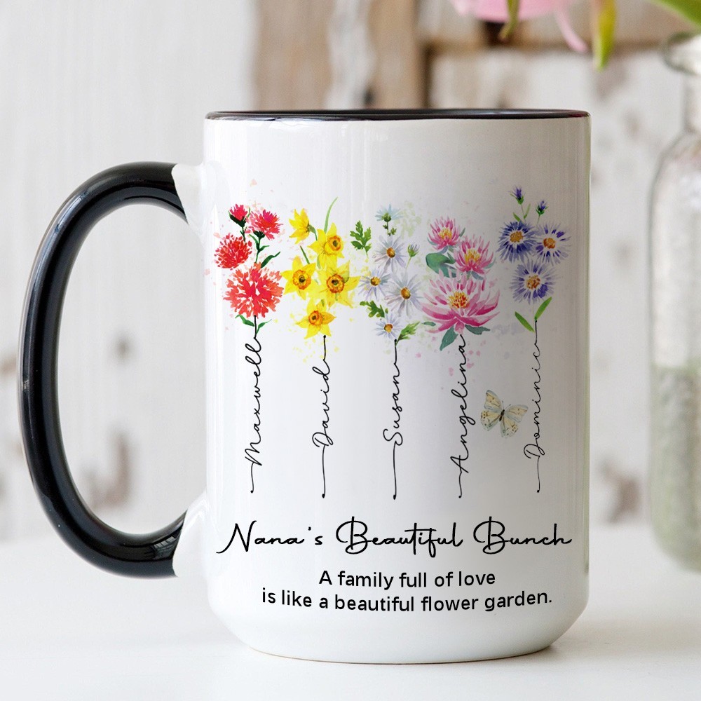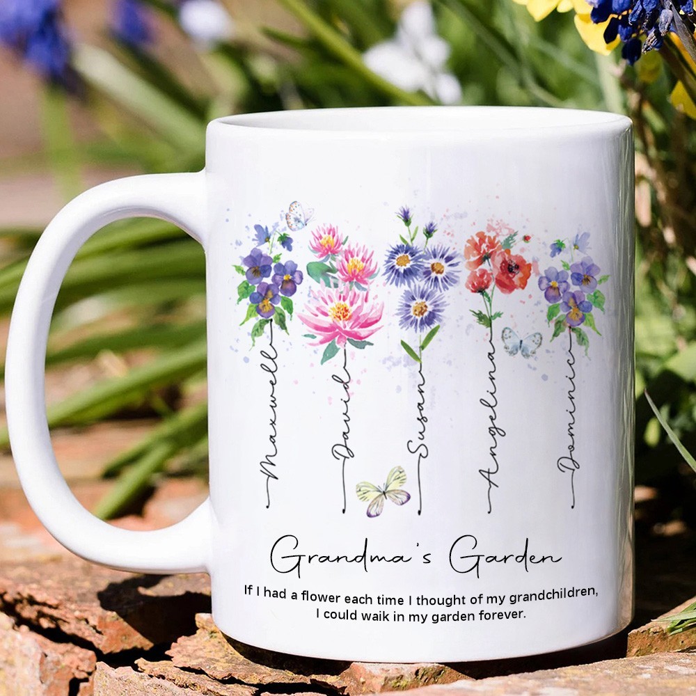Grandma' Garden Personalized Birth Flower Mug With Kids Names