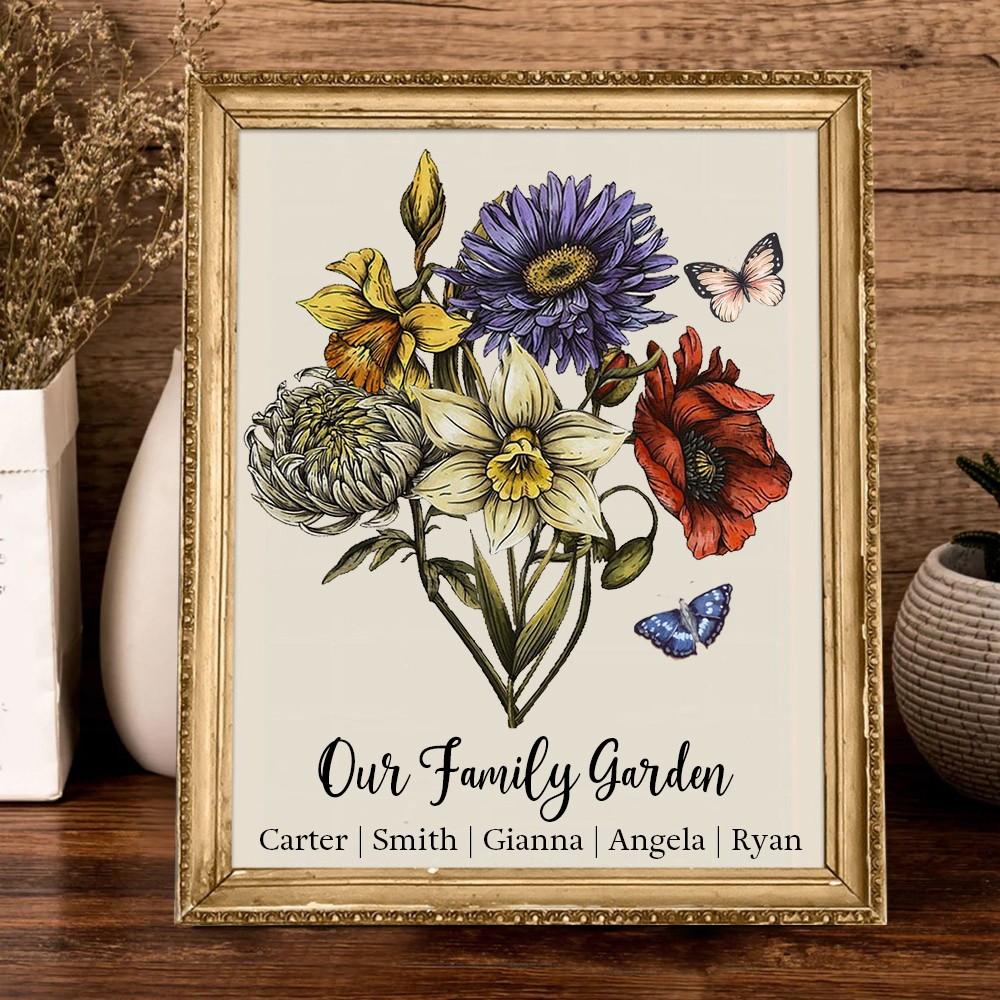 Grandma's Garden Birth Flower Bouquet Frame Sign with Grandkids Names Personalized Christmas Gift for Grandma Mom