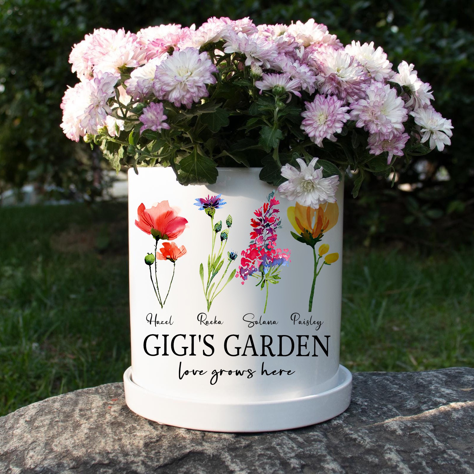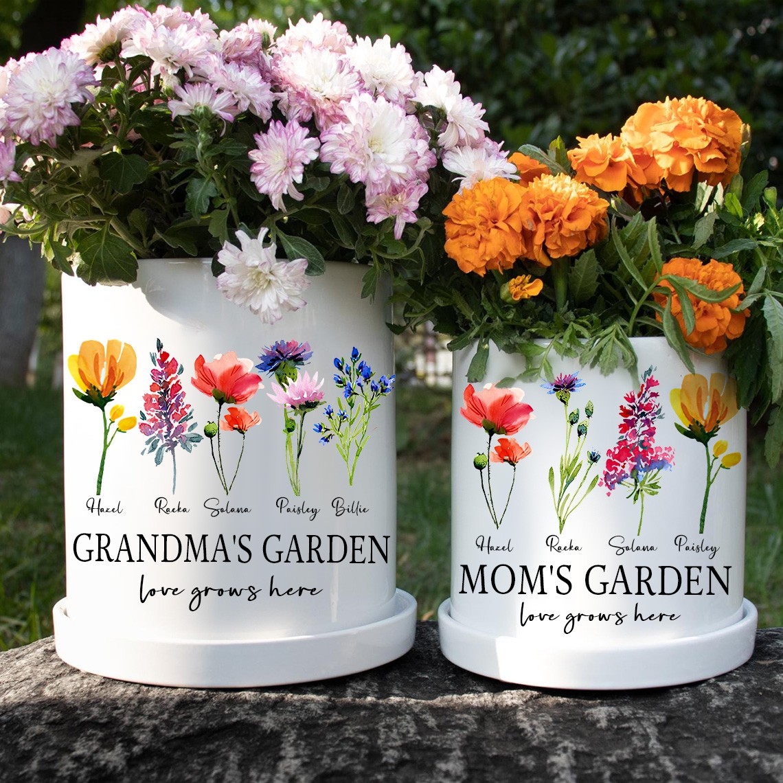 Grandma's Garden Birth Month Flower Plant Pot with Grandkids Names Custom Gifts for Grandma Mom Mother's Day Gift Ideas