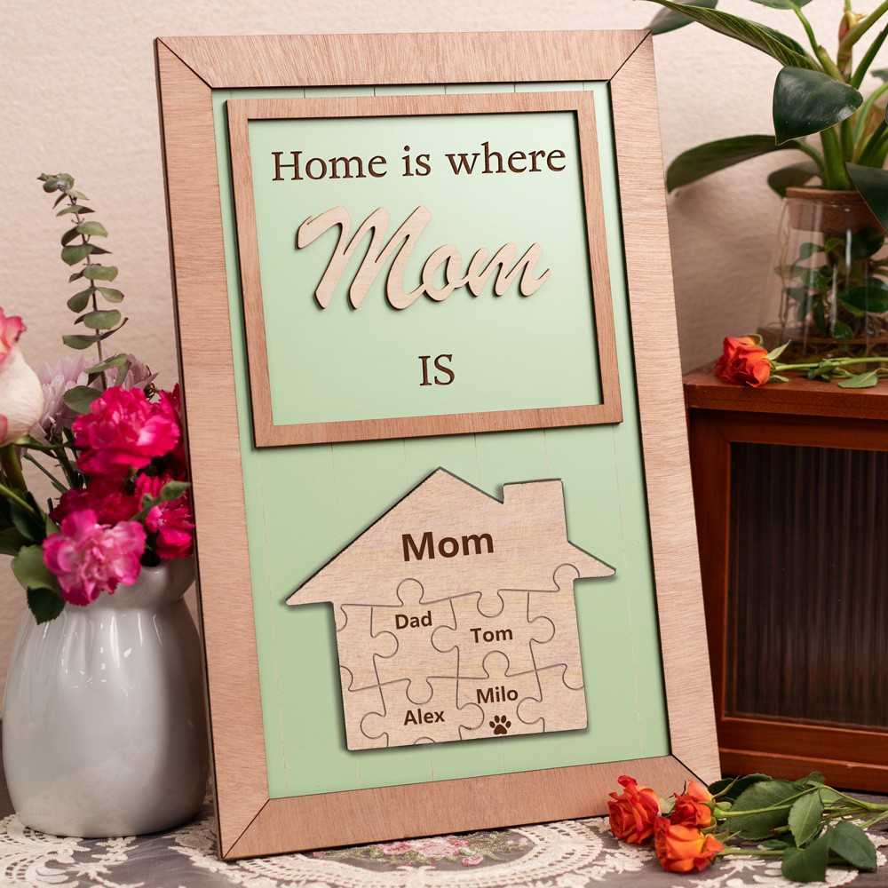 Home Is Where Mom Is Personalized Wood Mom Puzzle Sign Gift for Mom Grandma Mother's Day Gifts