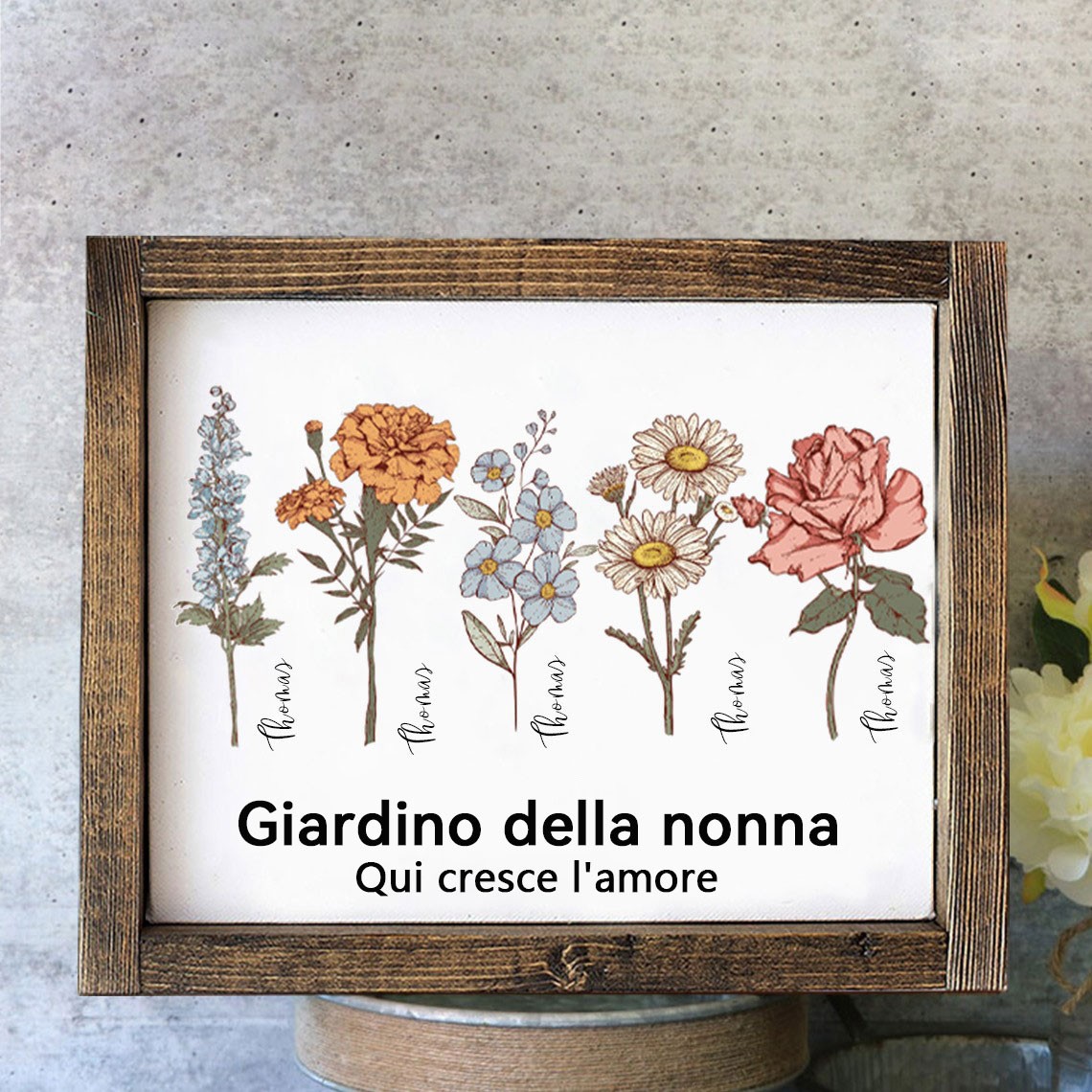 Stampa Personalizzata in Legno con Fiori di Nascita per il Giardino della Mamma - Cornice Familiare con Nomi dei Bambini - Regalo Unico per Compleanno della Mamma, Nonna, Baby Shower o Festa della Mamma1