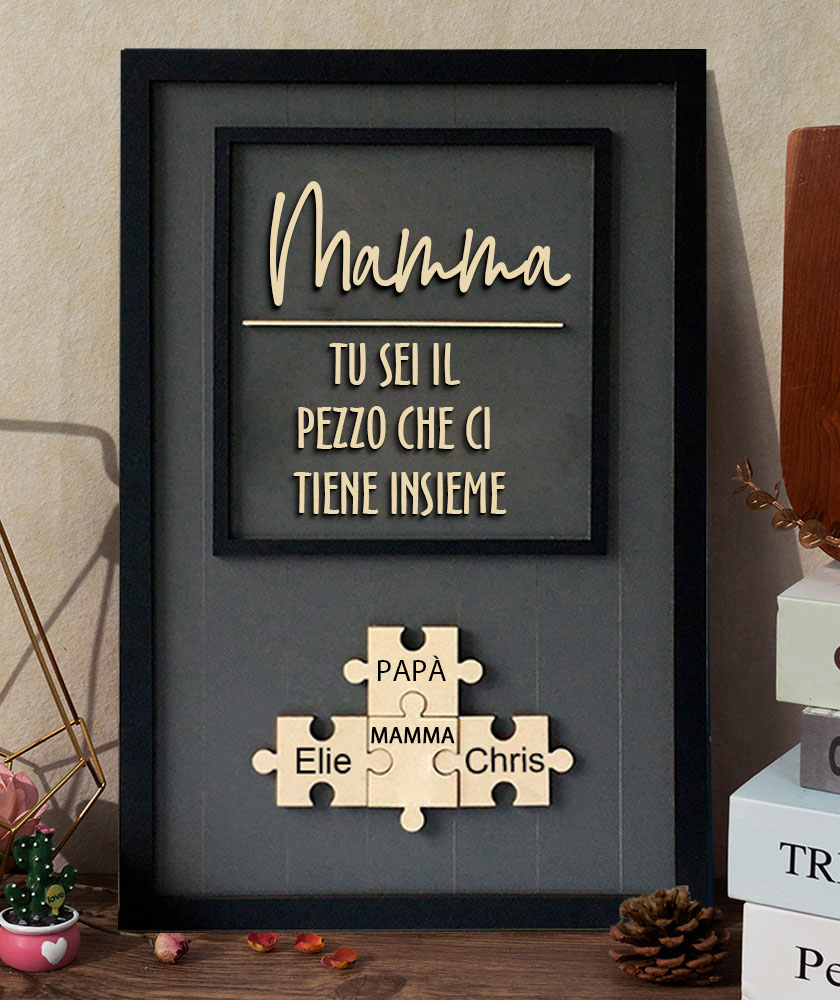 Puzzle personalizzato con il nome della mamma, tu sei il pezzo che ci tiene insieme, regalo unico per la mamma, la nonna, regali per la festa della mamma