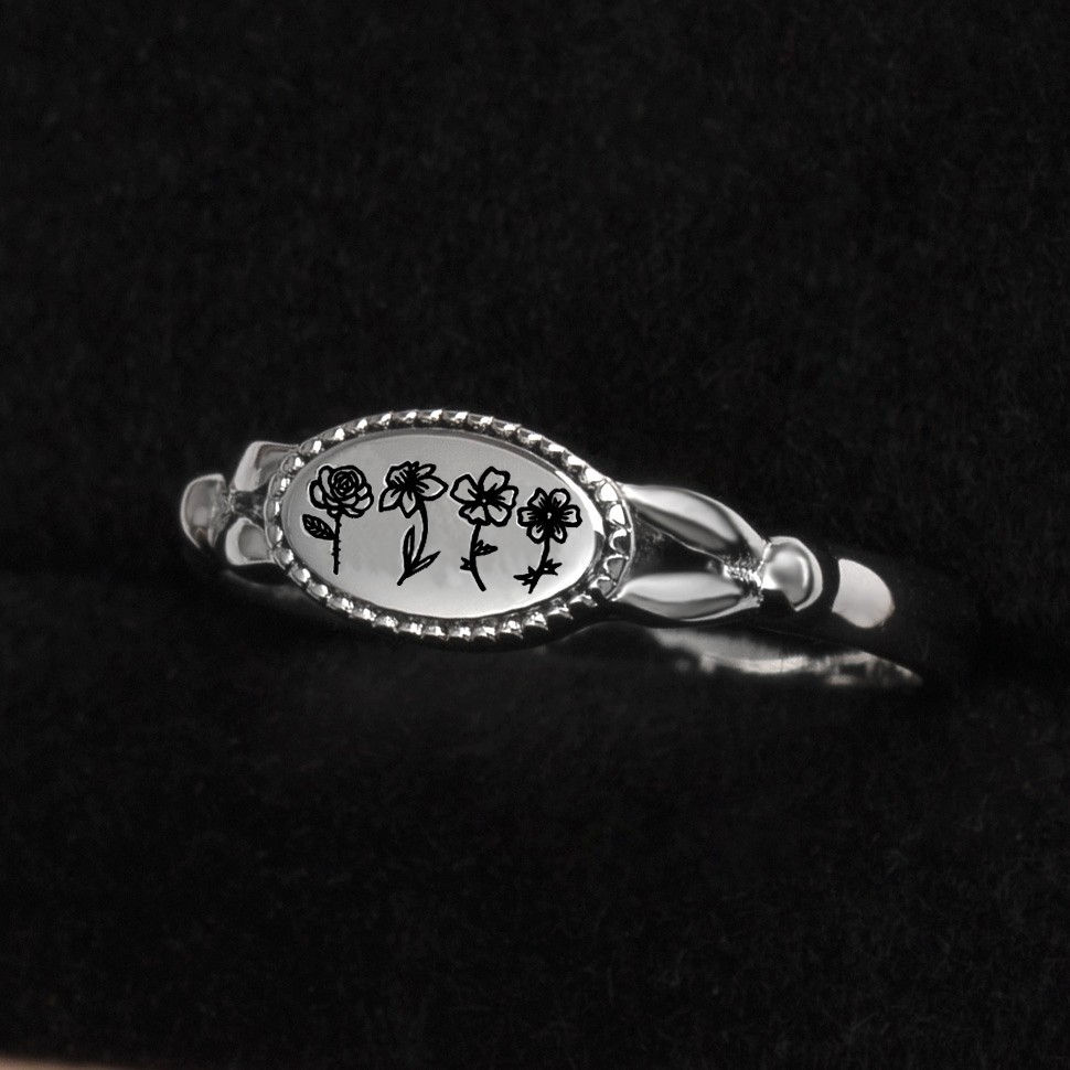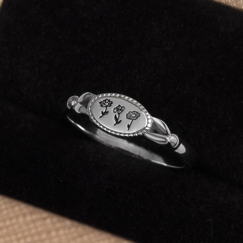 Anello vintage con fiore di nascita personalizzato, regalo unico per la mamma, regalo di compleanno della nonna per le idee regalo per la festa della mamma