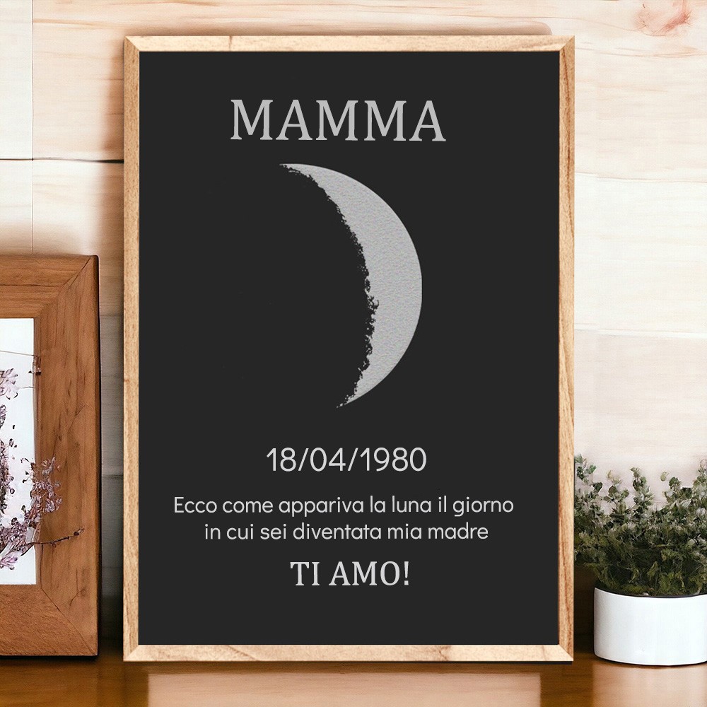 Cartello in legno con fasi lunari per il regalo della festa della mamma. Regali personalizzati per la mamma