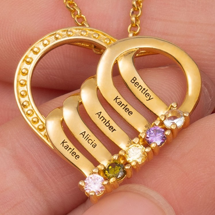 Collana familiare personalizzata a forma di cuore con nomi di bambini e pietre portafortuna, regalo unico per la mamma, la nonna, idee regalo per la festa della mamma