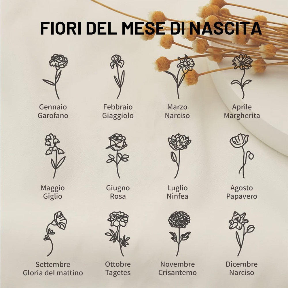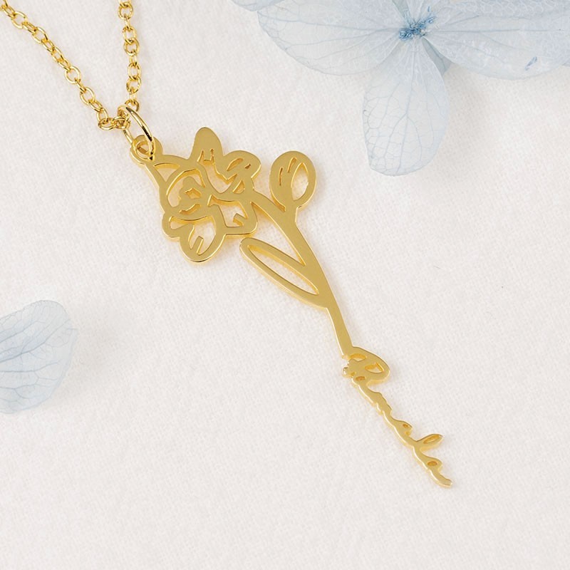 Collana personalizzata con fiori di nascita con nome inciso. Regalo unico per le idee regalo per la festa della mamma